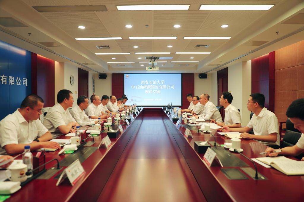 在中國石油新疆銷售有限公司走訪交流期間,公司黨委副書記、總經(jīng)理黃劍宇等企業(yè)領(lǐng)導(dǎo)會見常江、王進(jìn)富一行,并進(jìn)行工作座談。黃劍宇感謝學(xué)校在長期的合作過程中,為公司提供了重要的人才、科技支撐。他表示,下一步將圍繞科研攻關(guān)、創(chuàng)新人才培養(yǎng)、推進(jìn)智慧銷售構(gòu)建大營銷體系、提升學(xué)歷教育培訓(xùn)等方面,進(jìn)一步增加合作力度、拓展合作廣度、加大合作深度,共同實現(xiàn)高質(zhì)量發(fā)展。