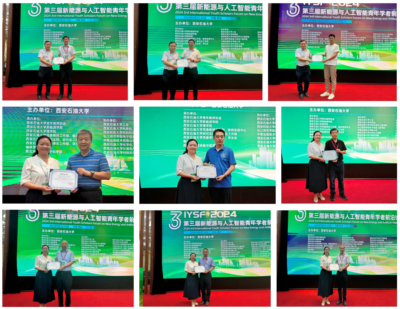 8月23日至25日,第三屆新能源與人工智能青年學(xué)者前沿論壇(IYSF2024)在我校雁塔校區(qū)成功召開。此次會(huì)議由西安石油大學(xué)主辦,我校青年教師協(xié)會(huì)、新能源學(xué)院、理學(xué)院、黨委教師工作部、研究生院、研究生工作部、黨委學(xué)生工作部及榆林學(xué)院、西北大學(xué)榆林碳中和學(xué)院承辦。來(lái)自西安交通大學(xué)、吉林大學(xué)、西北工業(yè)大學(xué)、西安電子科技大學(xué)、華北電力大學(xué)、中國(guó)石油大學(xué)(華東)、中國(guó)石油大學(xué)(北京)、西南石油大學(xué)、東北石油大學(xué)、西北大學(xué)等數(shù)十所高校和企業(yè)的專家學(xué)者、企業(yè)代表和學(xué)生出席大會(huì),40余位亞太材料科學(xué)院院士、國(guó)家杰出青年基金獲得者、長(zhǎng)江學(xué)者特聘教授、國(guó)家優(yōu)秀青年科學(xué)基金獲得者、國(guó)家萬(wàn)人計(jì)劃領(lǐng)軍人才等知名專家學(xué)者匯聚一堂,共同探討新能源與人工智能的最新技術(shù)、應(yīng)用及發(fā)展趨勢(shì)。會(huì)前,我校黨委書記常江接見了與會(huì)嘉賓和代表,他對(duì)各位專家學(xué)者的到來(lái)表示熱烈歡迎,并對(duì)他們一直以來(lái)對(duì)學(xué)校的關(guān)心與支持表示感謝,希望各位專家能夠繼續(xù)為我校新能源學(xué)院的發(fā)展提供寶貴的意見和建議。