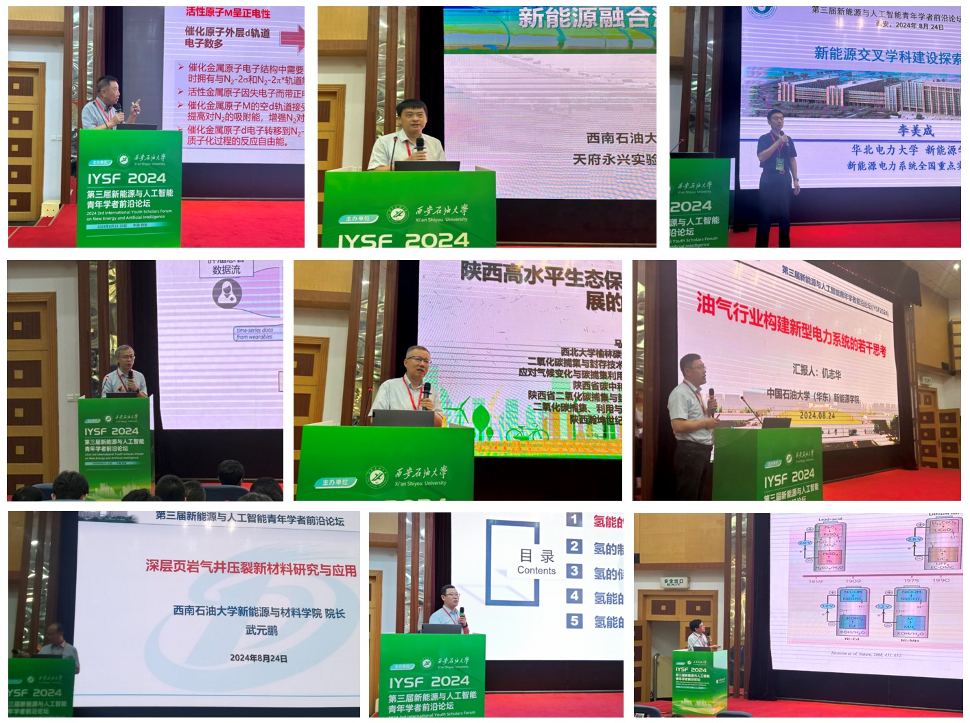 國(guó)家杰青、長(zhǎng)江學(xué)者、吉林大學(xué)蔣青教授做了題為“電化學(xué)合成氨鉬基催化材料的設(shè)計(jì)與制備”的報(bào)告;國(guó)家杰青、廣東省人民醫(yī)院主任醫(yī)師劉再毅教授做了題為“腫瘤多模態(tài)影像AI研究進(jìn)展”的報(bào)告;國(guó)家杰青、長(zhǎng)江學(xué)者、西南石油大學(xué)副校長(zhǎng)周瑩教授做了題為“新能源融合油氣資源開發(fā)利用”的報(bào)告;長(zhǎng)江學(xué)者、國(guó)家萬(wàn)人計(jì)劃科技領(lǐng)軍人才、華北電力大學(xué)新能源學(xué)院院長(zhǎng)李美成教授做了題為“新能源交叉學(xué)科建設(shè)探索與實(shí)踐”的報(bào)告;國(guó)家高層次人才、西北大學(xué)碳中和學(xué)院首席科學(xué)家馬勁風(fēng)教授做了題為“陜西高水平生態(tài)保護(hù)與綠色高質(zhì)量發(fā)展的路徑”的報(bào)告;中國(guó)石油大學(xué)(華東)新能源學(xué)院副院長(zhǎng)仉志華教授做了題為“油氣行業(yè)構(gòu)建新型電力系統(tǒng)的若干思考”的報(bào)告;西南石油大學(xué)新能源與材料學(xué)院院長(zhǎng)武元鵬做了題為“油氣行業(yè)高校新能源學(xué)科專業(yè)發(fā)展探索與實(shí)踐”的報(bào)告;中國(guó)石油大學(xué)(北京)楊帆教授做了題為“氫能產(chǎn)業(yè)發(fā)展現(xiàn)狀與展望”的報(bào)告;國(guó)家百千萬(wàn)人才工程入選專家、西安理工大學(xué)李喜飛教授做了題為“鋰離子電池三元正極材料界面改性的研究”的報(bào)告;國(guó)家萬(wàn)人計(jì)劃科技創(chuàng)新領(lǐng)軍人才、長(zhǎng)江學(xué)者、國(guó)家優(yōu)青、吉林大學(xué)郎興友教授做了題為“水系多價(jià)金屬離子電池共晶合金負(fù)極材料”的報(bào)告;國(guó)家優(yōu)青、西北工業(yè)大學(xué)袁源教授做了題為“干擾對(duì)抗融合下無(wú)人系統(tǒng)博弈優(yōu)化控制”的報(bào)告;國(guó)家優(yōu)青、西安電子科技大學(xué)吳金建教授做了題為“向事件相機(jī)的感光芯片設(shè)計(jì)及異步信號(hào)智能處理”的報(bào)告;國(guó)家級(jí)高層次人才、西北工業(yè)大學(xué)謝科予教授做了題為“金屬鋰負(fù)極改性及其電化學(xué)行為調(diào)控”的報(bào)告;陜西師范大學(xué)材料科學(xué)與工程學(xué)院院長(zhǎng)曾京輝教授做了題為“鐵電光伏器件界面導(dǎo)電調(diào)控及器件性能研究”的報(bào)告;國(guó)家百千萬(wàn)人才工程入選專家、西安石油大學(xué)屈撐囤教授做了題為“含油污泥基碳?xì)洳牧系闹苽浼捌湫阅苎芯俊钡膱?bào)告;中科院百人計(jì)劃(A類)楊小渝教授做了題為“智算驅(qū)動(dòng)的生物基聚氨酯設(shè)計(jì)”的報(bào)告;陜西省“特支計(jì)劃”科技創(chuàng)新領(lǐng)軍人才、西安建筑科技大學(xué)云斯寧教授做了題為“異質(zhì)結(jié)和內(nèi)建電場(chǎng)提升太陽(yáng)電池和制氫催化劑的性能”的報(bào)告;長(zhǎng)江師范學(xué)院電子信息工程學(xué)院院長(zhǎng)黨隨虎教授做了題為“光纖傳感監(jiān)測(cè)技術(shù)在頁(yè)巖氣開發(fā)中的應(yīng)用”的報(bào)告。