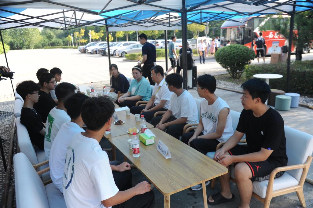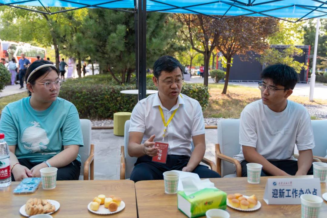 王進富與拔尖人才學(xué)生代表在迎新現(xiàn)場進行交流座談,他對同學(xué)們的到來表達了誠摯的歡迎,并親切詢問了大家的生源信息、所學(xué)專業(yè)和對未來的規(guī)劃,同時鼓勵同學(xué)們砥礪求知,學(xué)有所成。