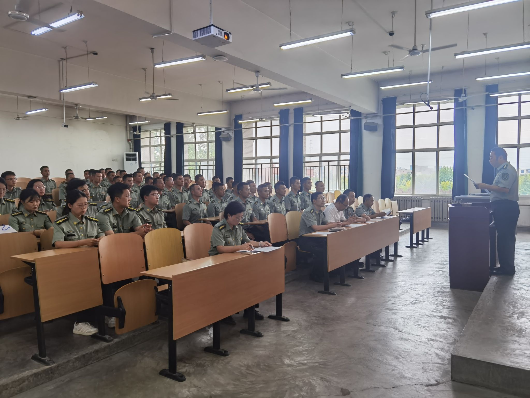 趙健代表學校黨政對部隊長期支持學校國防教育及軍訓工作表示衷心的感謝,對承擔2024級學生軍訓工作的全體教官表示熱烈的歡迎。他在講話中強調(diào),全體參訓干部要高度重視此次軍訓任務,用心、用情上好新生的開學第一課。同時,他就做好本次軍訓工作提出三點要求:一是軍訓組織要嚴密。學校各有關部門、各單位要統(tǒng)籌兼顧,密切協(xié)作,確保軍訓工作順利有序進行;全體參訓干部要以高度的責任感投入到此次軍訓中,密切配合部隊教官的軍事訓練,全程深入訓練第一線,要向?qū)W生、向社會展現(xiàn)我校特有的石油精神風貌。二是軍訓內(nèi)容要科學。各軍訓教官要嚴格施訓、科學施訓、人文施訓。訓練中既要“嚴”字當頭,又要對學生保持耐心,要在言行上做學生的表率,向?qū)W生展現(xiàn)新一代革命軍人鐵一般的軍事紀律、優(yōu)良的光榮傳統(tǒng)和良好的軍容軍風。三是軍訓效果要明顯。全體參訓單位和參訓人員要切實增強學生的愛國主義意識和集體主義觀念,幫助學生盡快融入大學生活,同時,要注意軍訓安全,保障此次軍訓平安有序。各院(系)及相關部門要扎實做好后勤保障工作,為新生提供暖心服務。