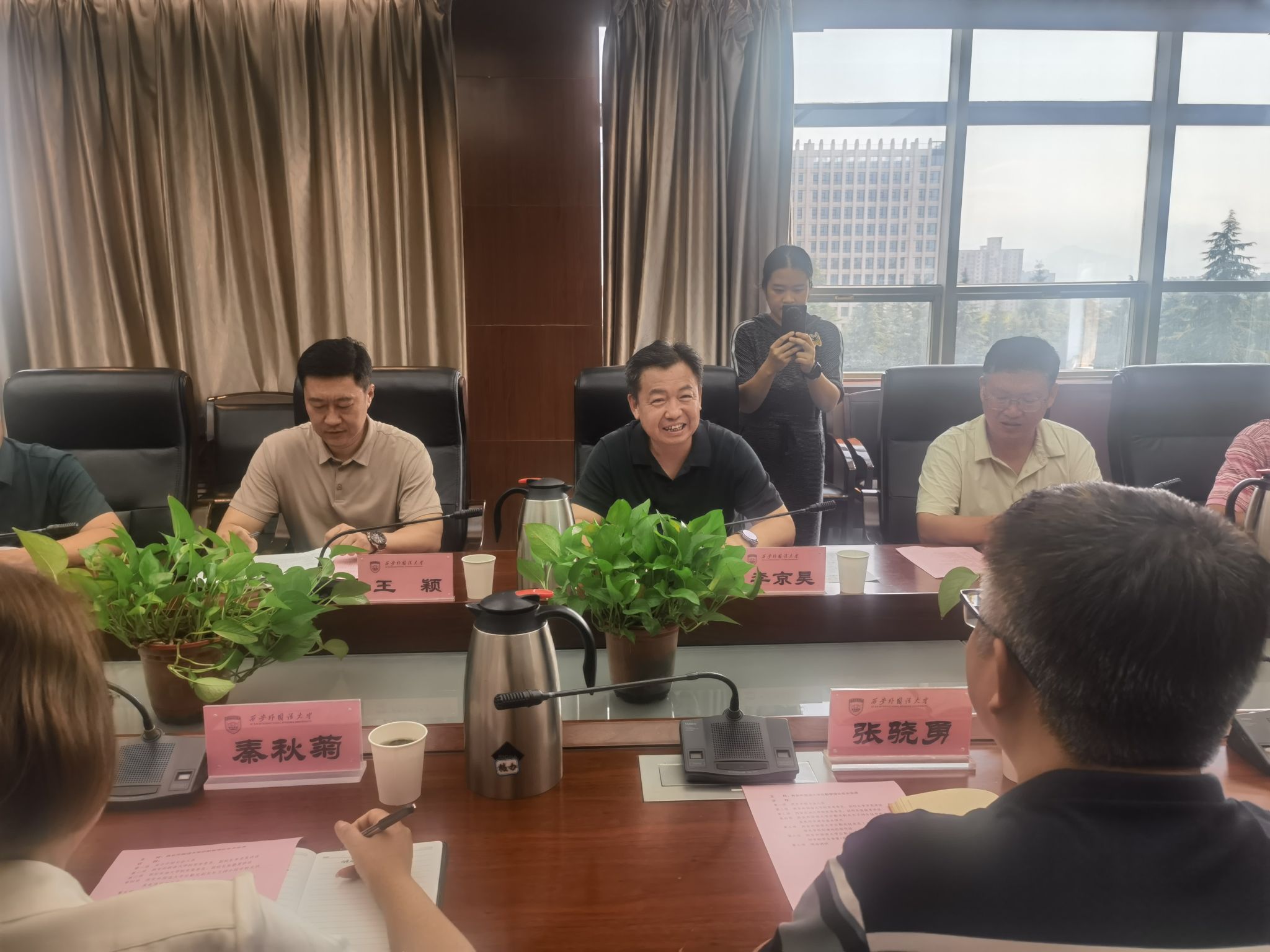 在莊重而友好的氛圍中,李京昊代表學校對張驍勇一行的到來表示熱烈歡迎,并詳細介紹了學校在后勤管理方面的總體布局與實踐成果。李京昊強調(diào),西安外國語大學始終將綠色發(fā)展理念融入校園規(guī)劃與管理中,通過實施光伏發(fā)電項目、推廣綠色校園建設(shè)、優(yōu)化食堂運營等舉措,致力于為師生提供一個健康、舒適、低碳的學習與生活環(huán)境,同時,學校還積極引導師生參與綠色校園建設(shè),培養(yǎng)學生的環(huán)保意識和社會責任感,為社會輸送具有綠色理念的高素質(zhì)人才。