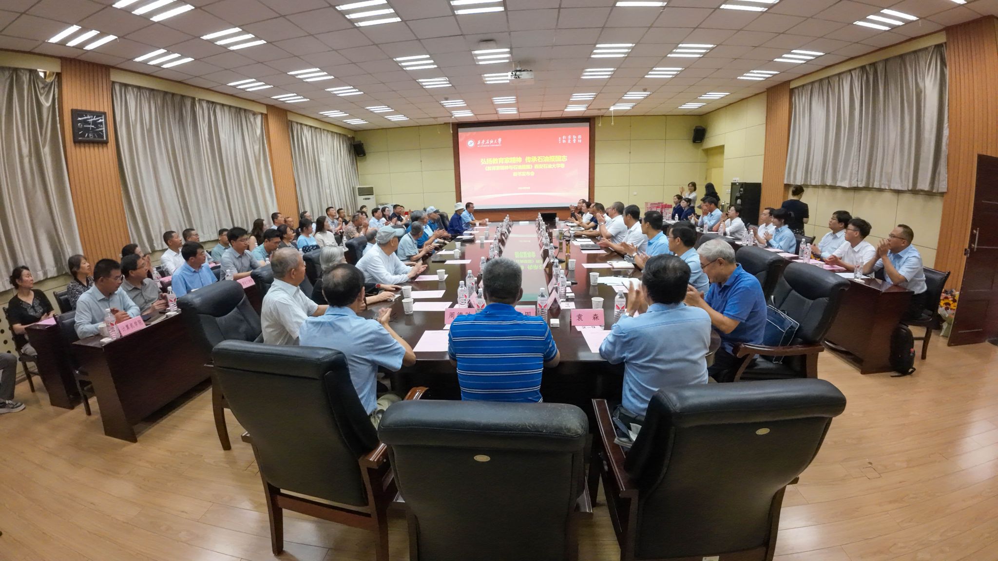 9月10日上午,學(xué)校在雁塔校區(qū)第一會議室舉辦《教育家精神與石油報國》叢書西安石油大學(xué)卷新書發(fā)布會。校黨委書記常江、校長王進富出席發(fā)布會。入選叢書的教師及其親屬代表,青年教師代表等50余人參加發(fā)布會。發(fā)布會由校黨委副書記程永清主持。