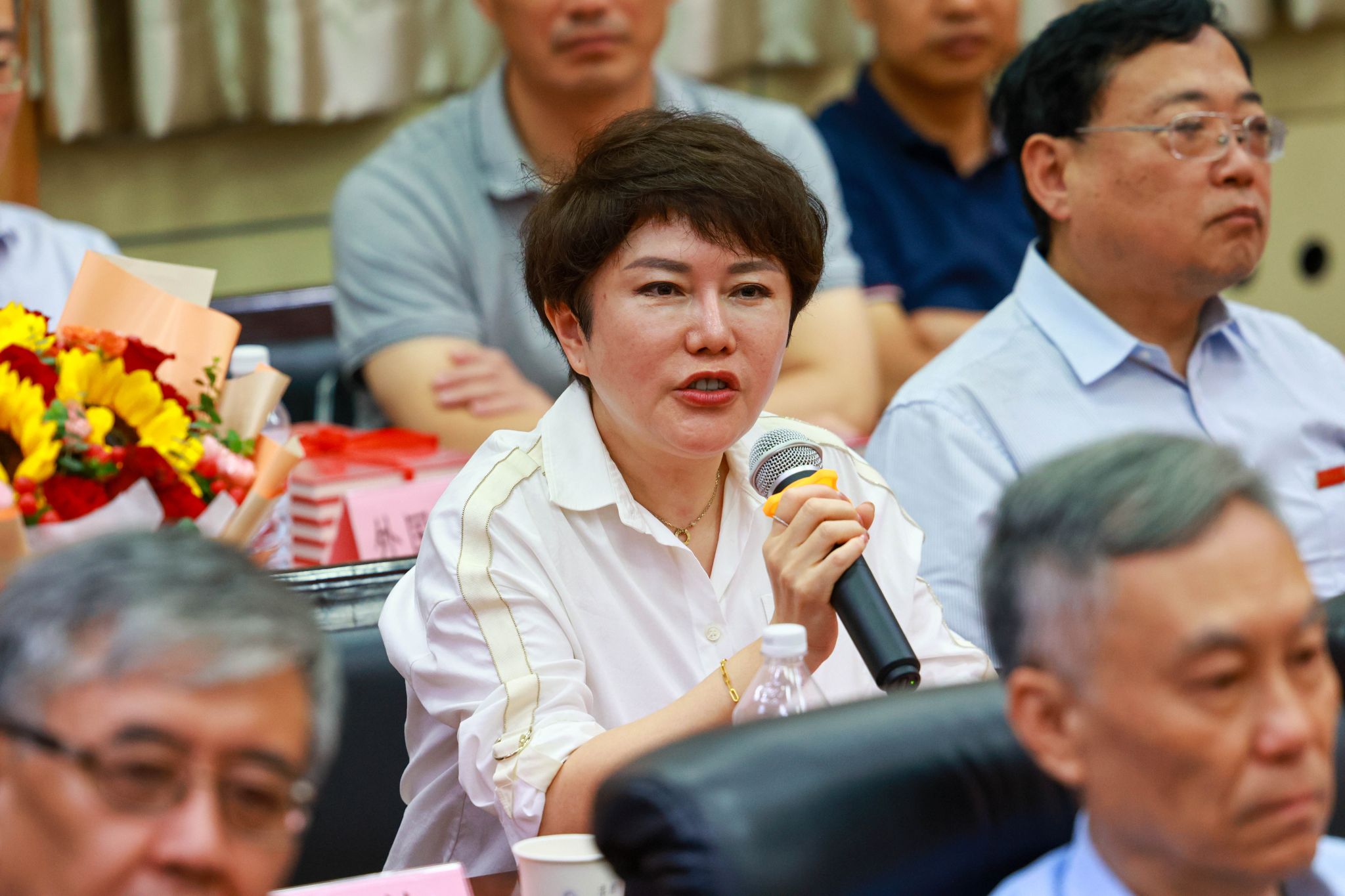 青年教師代表向入選叢書的教師及其親屬獻花