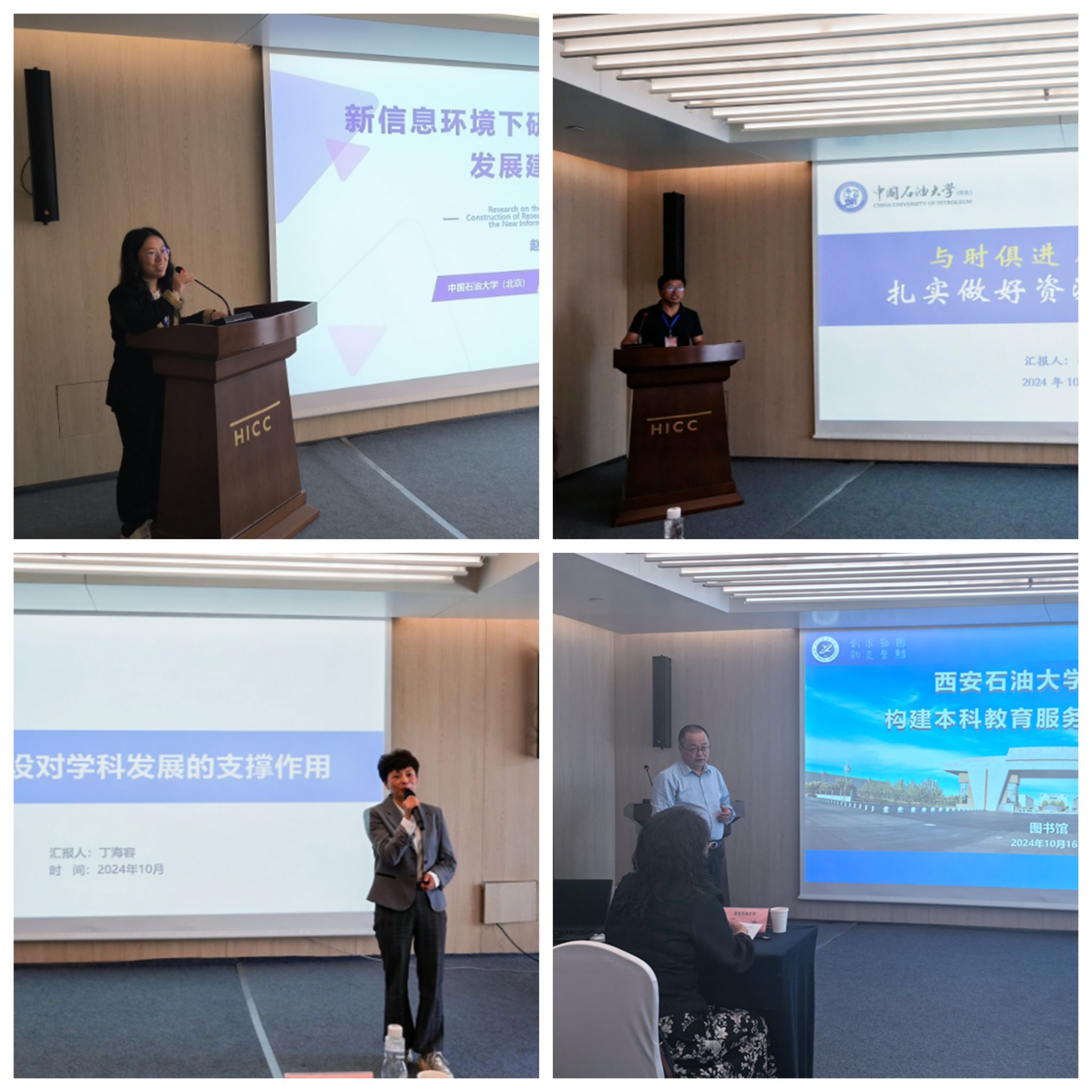 中國(guó)石油大學(xué)(北京)圖書館副研究館員趙天姿、中國(guó)石油大學(xué)(華東)圖書館資源建設(shè)部主任張雪松、成都理工大學(xué)圖書館副館長(zhǎng)丁海容、我校圖書館副研究館員史啟明,分別以“新信息環(huán)境下研究型大學(xué)圖書館發(fā)展建設(shè)研究”“與時(shí)俱進(jìn)順勢(shì)而為扎實(shí)做好資源建設(shè)工作”“文獻(xiàn)資源建設(shè)對(duì)學(xué)科發(fā)展的支撐作用”“新時(shí)代高校圖書館構(gòu)建本科教育教學(xué)服務(wù)體系的探索”為題,作了精彩的學(xué)術(shù)報(bào)告。