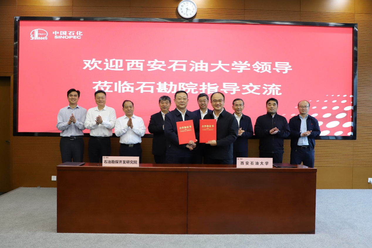 郭旭升對王進(jìn)富一行到訪交流表示歡迎。他表示,長期以來,中國石化石油勘探開發(fā)研究院與西安石油大學(xué)在人才培養(yǎng)、科研攻關(guān)等方面開展了有效合作,取得了豐碩的成果。他指出,希望雙方通過本次合作協(xié)議的簽署,能在加強(qiáng)科技攻關(guān)、教育培訓(xùn)、人才培養(yǎng)等方面深化合作內(nèi)容,將合作意向清單化具體化,加強(qiáng)協(xié)同創(chuàng)新、交流互通,真正將雙方合作落實(shí)落地,共同為能源行業(yè)的轉(zhuǎn)型升級作出新的更大貢獻(xiàn)。