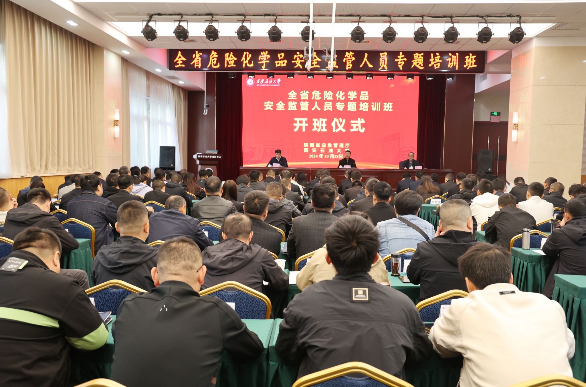 為進(jìn)一步提升我省危險化學(xué)品監(jiān)管人員安全監(jiān)管水平,有效遏制危險化學(xué)品領(lǐng)域安全事故,10月28日上午,由省應(yīng)急管理廳主辦、西安石油大學(xué)培訓(xùn)中心承辦的全省危險化學(xué)品安全監(jiān)管人員培訓(xùn)班在西安石油大學(xué)明德校區(qū)順利開班。省應(yīng)急管理廳黨委副書記孟中華,我校黨委委員、副校長趙健及來自全省12個市(區(qū))、危險化學(xué)品重點縣(區(qū))和29個化工園區(qū)的120名安全監(jiān)管人員出席開班儀式,儀式由省應(yīng)急管理廳?;幪庨L陳坤山主持。