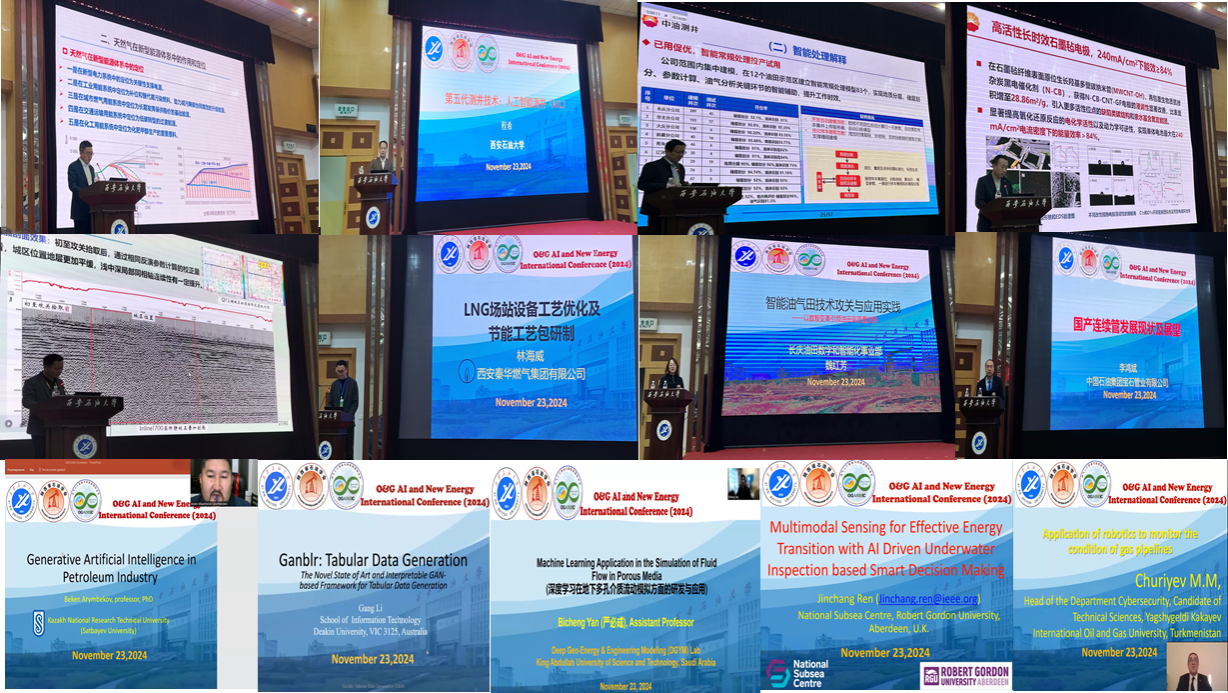 在會議交流階段,2024油氣AI與新能源國際會議以“油氣AI科技創(chuàng)新,能源共謀綠色發(fā)展”為主題,特邀來自中國、英國、澳大利亞、沙特阿拉伯、哈薩克斯坦、土庫曼斯坦等國家的13位知名專家學者,通過線下、線上,圍繞AI在油氣勘探、測井、地震、管道工程、地面工程、工程材料研究中的應用以及地熱、光伏、儲能等新能源領域做了精彩的學術報告,吸引了校內(nèi)外200余名師生參加,為理解油氣AI與新能源技術現(xiàn)狀和發(fā)展趨勢提供了寶貴機會。