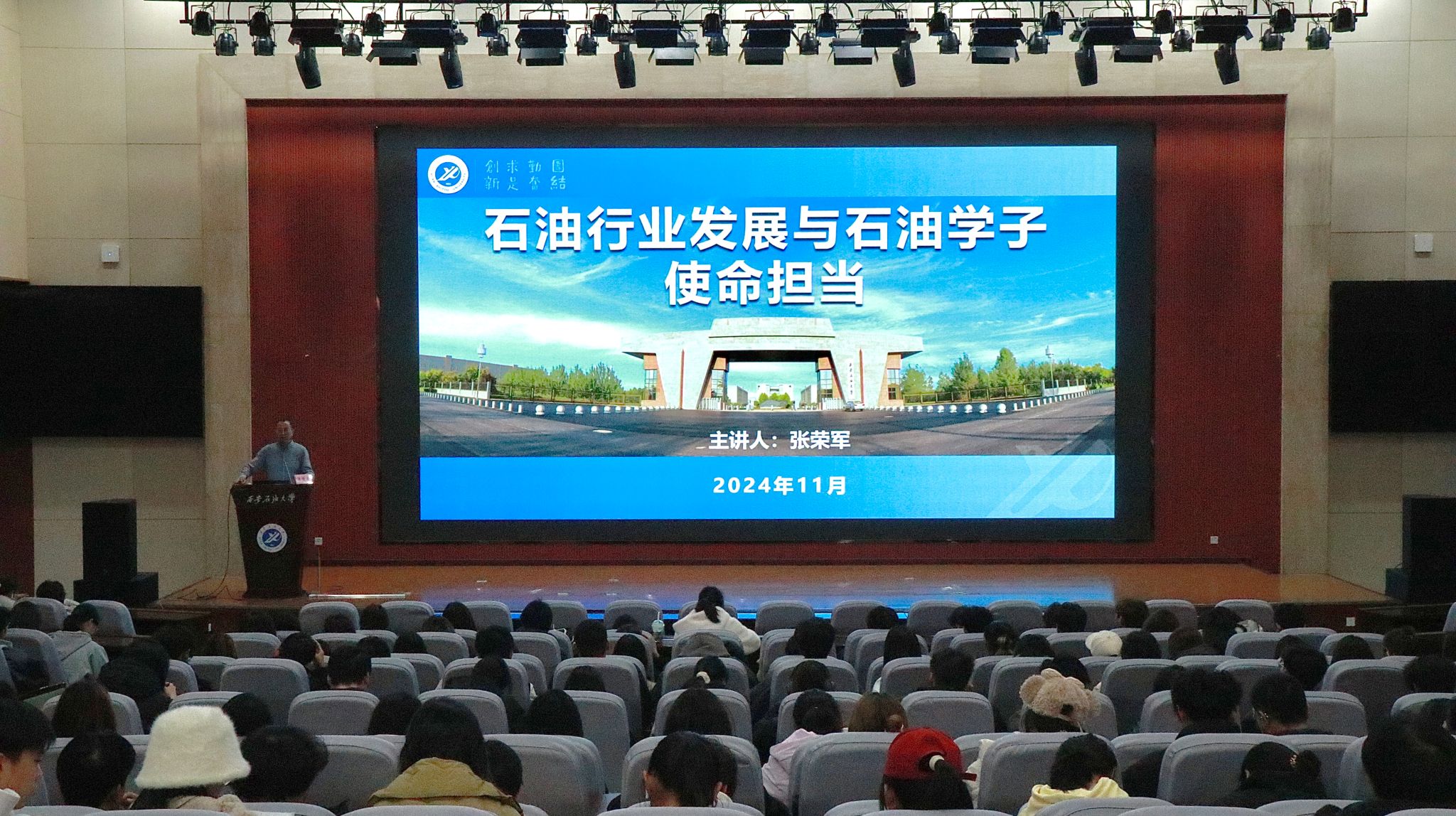 11月25日晚,副校長張榮軍在鄠邑校區(qū)弘石報(bào)告廳為人文學(xué)院學(xué)生講授題為“石油行業(yè)發(fā)展與石油學(xué)子使命擔(dān)當(dāng)”的專題思政課,人文學(xué)院學(xué)生工作干部、2024級(jí)全體本科生參加。