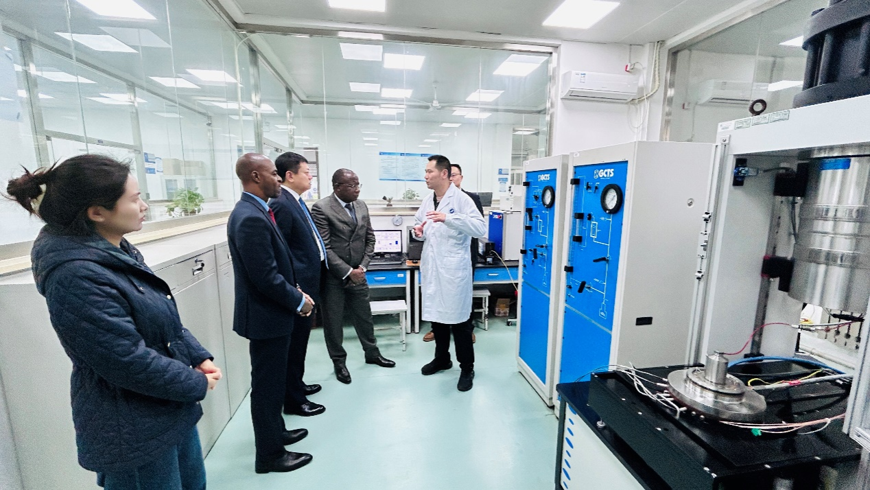 會(huì)后,雅克·尼昂加大使一行參觀了我校西部低滲—特低滲透油田開發(fā)與治理教育部工程研究中心、陜西省油氣成藏地質(zhì)學(xué)重點(diǎn)實(shí)驗(yàn)室、現(xiàn)代分析檢測(cè)中心等重點(diǎn)實(shí)驗(yàn)室,對(duì)我校在油氣領(lǐng)域取得的科研成果表示贊賞,希望未來(lái)繼續(xù)推進(jìn)剛果(布)與我校在石油天然氣領(lǐng)域的科研合作。