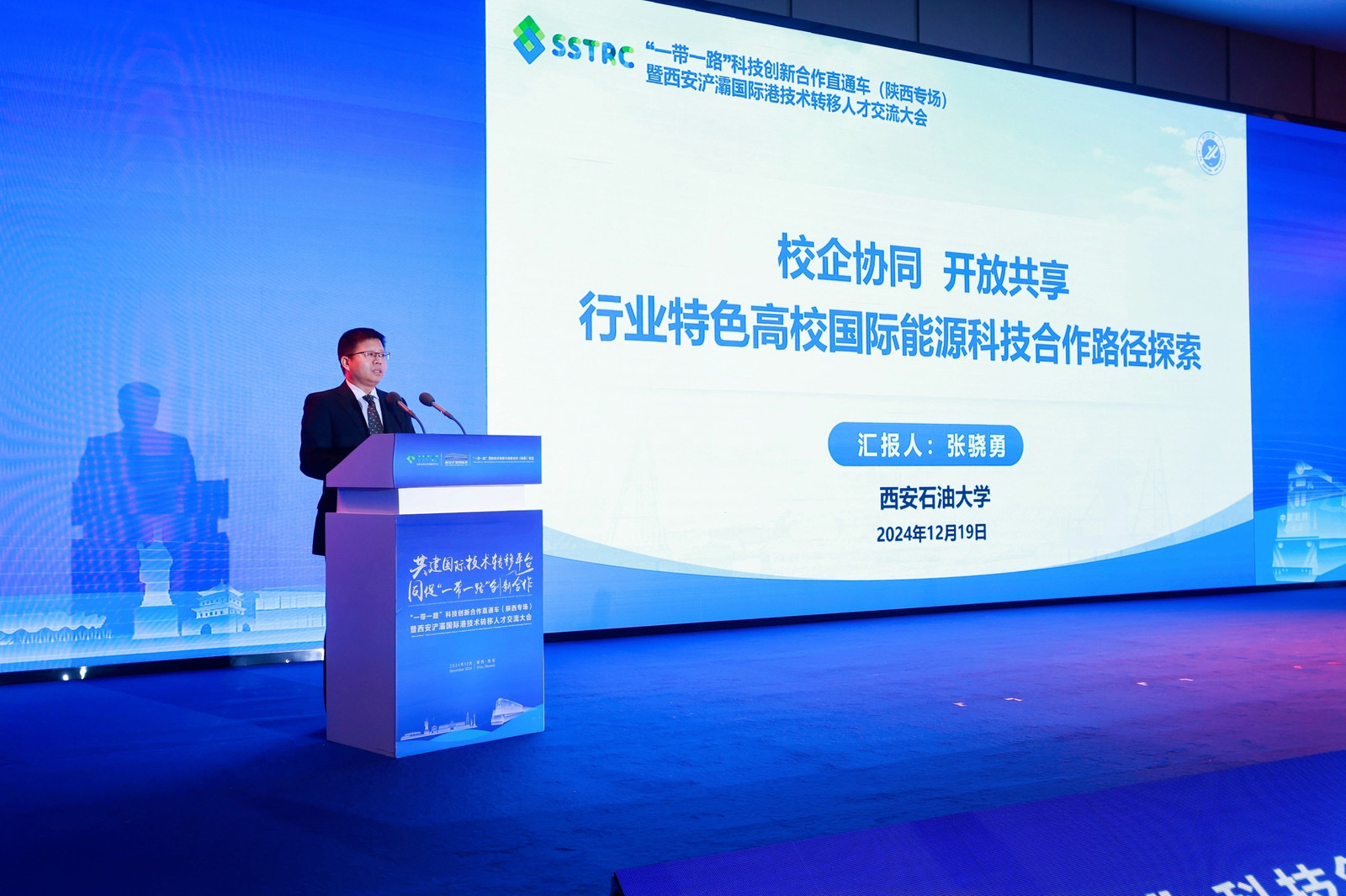 12月19日,由陜西省科技資源統(tǒng)籌中心與西安浐灞國際港管理委員會(huì)主辦,西安科技大市場有限公司承辦,我校與西安交通大學(xué)、西北工業(yè)大學(xué)等多家單位聯(lián)合協(xié)辦的“一帶一路”科技創(chuàng)新合作直通車(陜西專場)暨西安浐灞國際港技術(shù)轉(zhuǎn)移人才交流大會(huì)在西安舉辦。我校副校長張驍勇應(yīng)邀出席大會(huì),并做了題為《校企協(xié)同開放共享,行業(yè)特色高校國際能源科技合作路徑探索》的報(bào)告,科研處、國際合作與交流處相關(guān)負(fù)責(zé)人陪同參會(huì)。