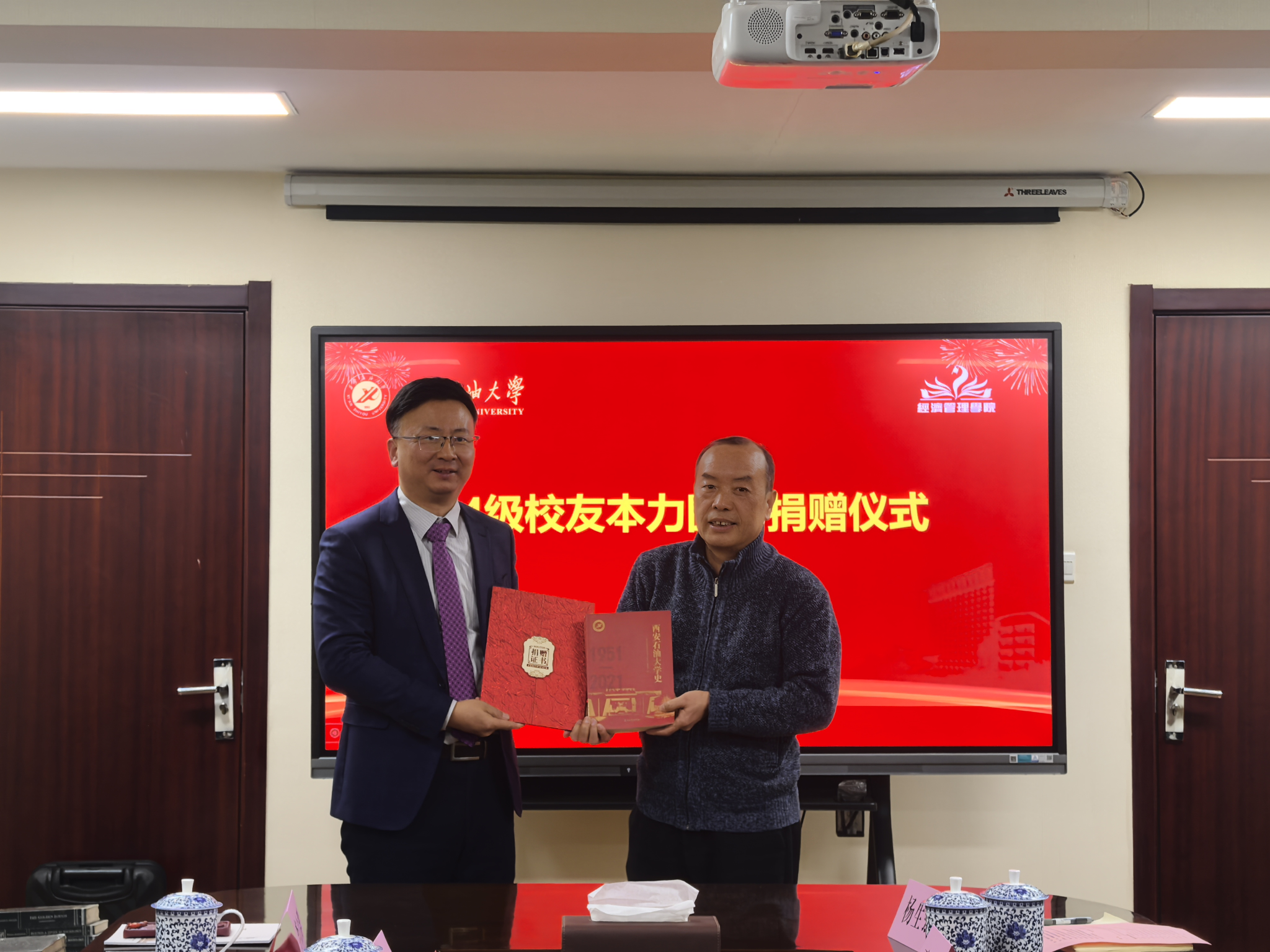 王君萍接受圖書(shū)捐贈(zèng),談建勤向本力頒發(fā)捐贈(zèng)證書(shū)并贈(zèng)送校史。座談會(huì)上,本力與經(jīng)管學(xué)院黨委書(shū)記談建勤,院長(zhǎng)王君萍,教師代表聶亦惠、王嵐、程俊、黃莉、李立群等老師進(jìn)行親切地交流座談,回顧在學(xué)校的學(xué)習(xí)時(shí)光,共敘師生之情。時(shí)光流逝,情意未變,最后本力表達(dá)對(duì)于母校、對(duì)老師辛勤培養(yǎng)的感謝。