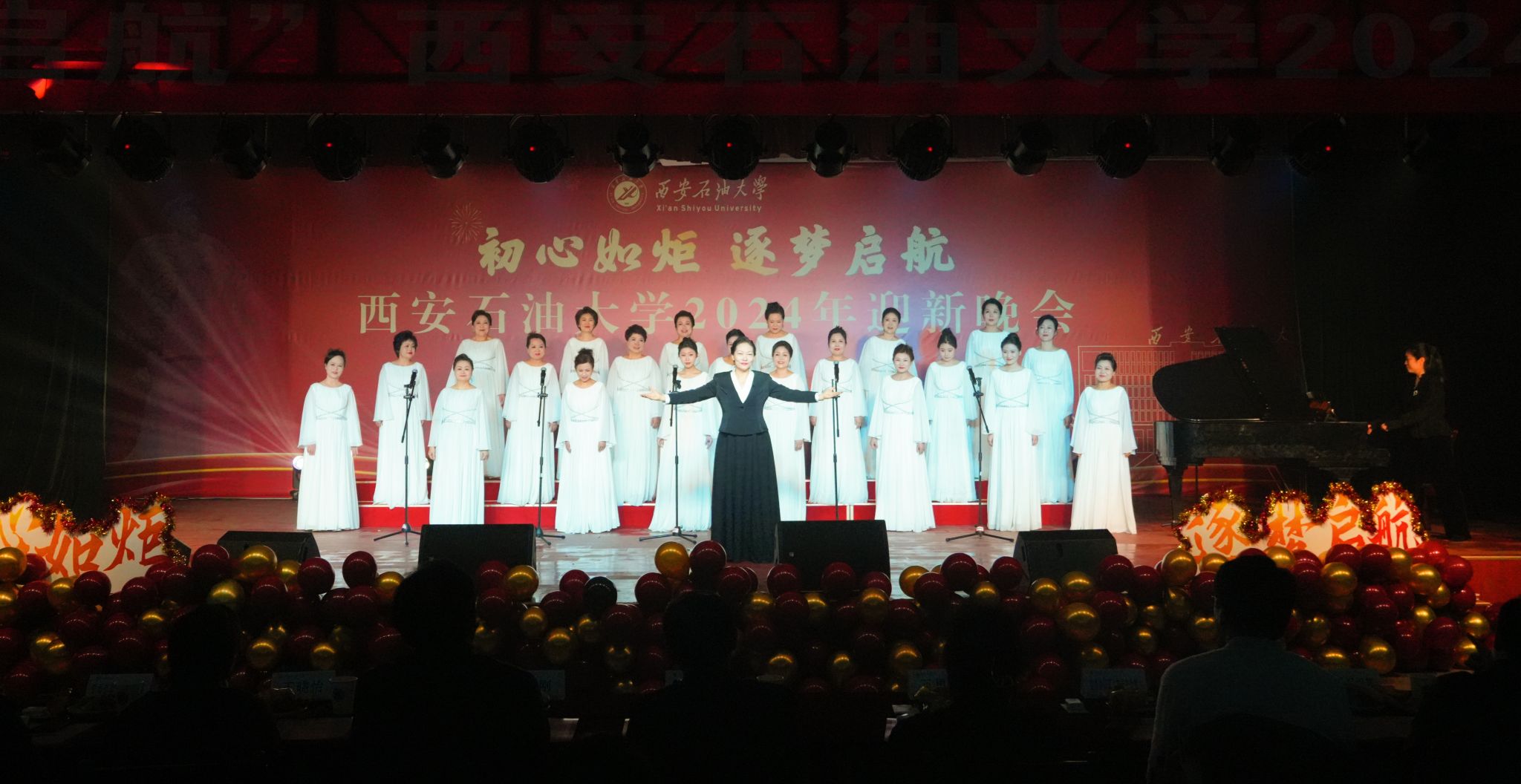 12月30日晚,“初心如炬 逐夢啟航”西安石油大學(xué)2024年迎新晚會在鄠邑校區(qū)騰輝大學(xué)生活動中心舉辦。副校長趙健出席晚會,學(xué)校相關(guān)職能部門、院(系)負(fù)責(zé)同志,教師代表,學(xué)生代表等800余人觀看晚會。