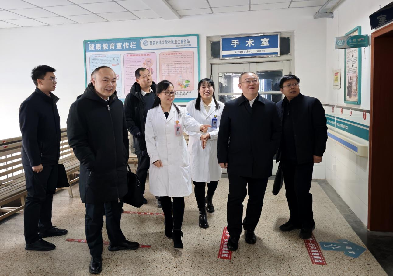 為進(jìn)一步做好冬季流行性疾病防控,確保學(xué)校傳染病防控各項(xiàng)工作有序推進(jìn),堅(jiān)決筑牢校園健康防線,1月10日下午,校黨委書記常江在雁塔校區(qū)就傳染病防控及校醫(yī)院工作開展情況進(jìn)行考察調(diào)研,并與大家座談交流,副校長張驍勇,黨委辦公室(校長辦公室)、人事處、財(cái)務(wù)處、后勤處等部門的主要負(fù)責(zé)人陪同調(diào)研并參加了座談會(huì)。