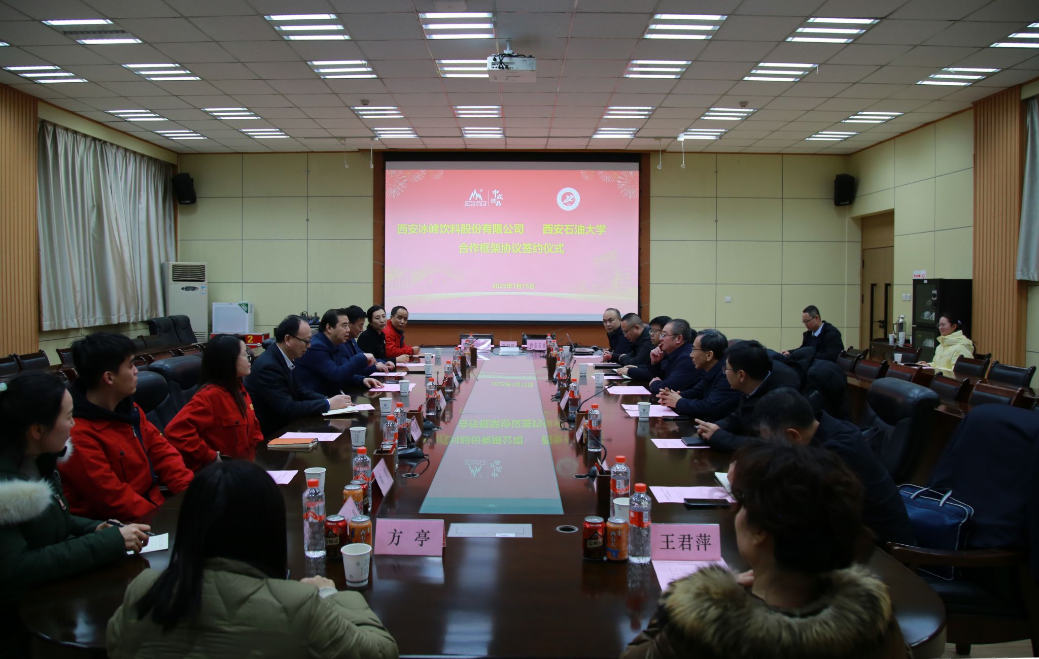 1月15日下午,我校與西安冰峰飲料股份有限公司在雁塔校區(qū)簽署了合作框架協(xié)議。西安市糖酒集團有限公司黨委書記、董事長、總經(jīng)理、西安冰峰飲料股份有限公司董事長張軍,西安市糖酒集團有限公司黨委委員、西安冰峰飲料股份有限公司總經(jīng)理姚軍鋒,西安市糖酒集團有限公司黨委委員、西安酒廠有限公司總經(jīng)理賀軍強,西安冰峰飲料股份有限公司黨支部副書記段莉娜,我校黨委書記常江,黨委委員、副校長張驍勇出席簽約儀式。儀式由校黨委副書記張木主持。