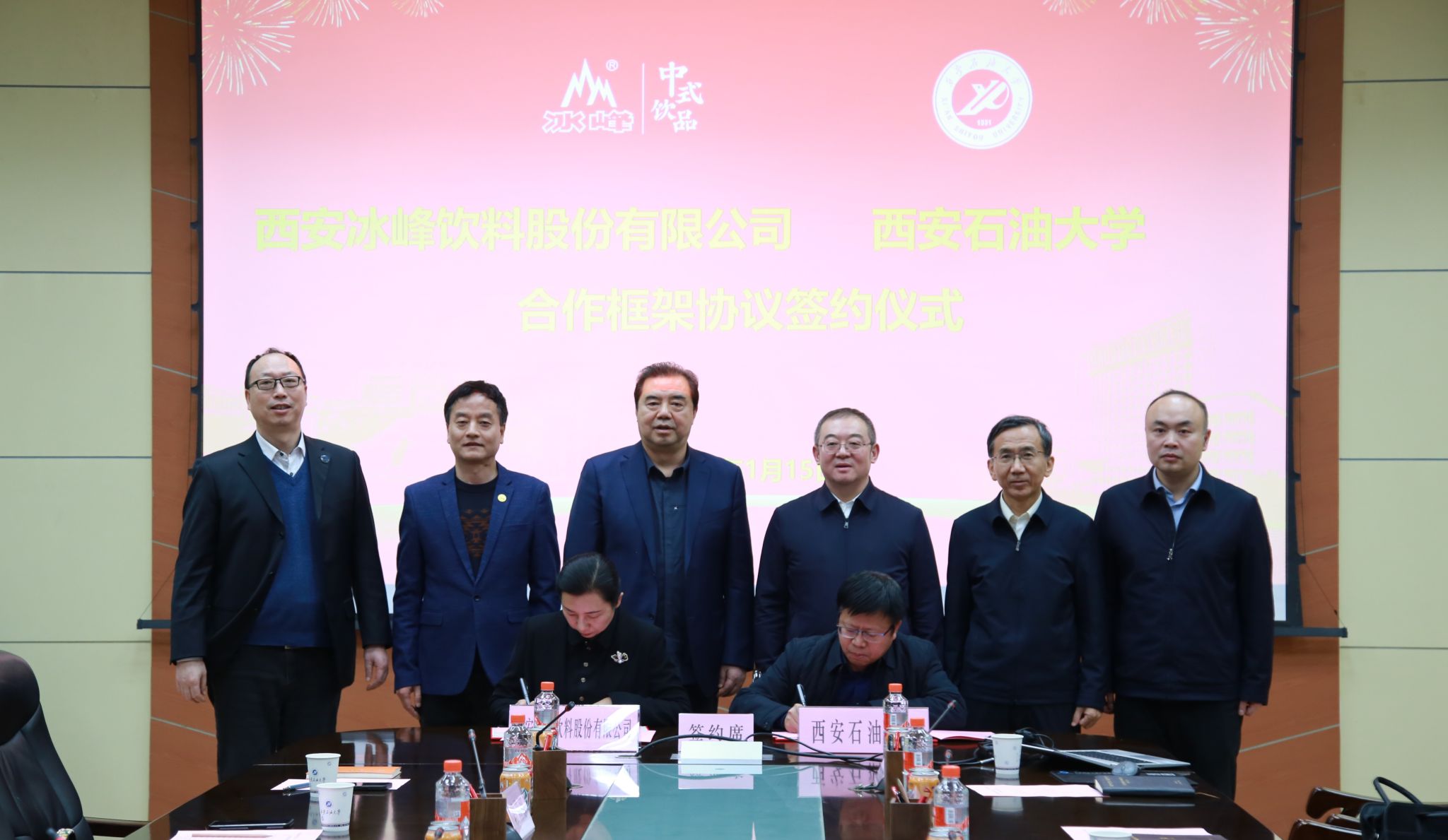 會上,張木和姚軍鋒分別代表校企雙方簽署了《西安冰峰飲料股份有限公司與西安石油大學合作框架協(xié)議》、張驍勇和段莉娜分別代表校企雙方簽署了《西安冰峰飲料股份有限公司與西安石油大學合作補充協(xié)議》。根據(jù)協(xié)議內容,雙方將本著優(yōu)勢互補、互惠互利、相互協(xié)作、共同發(fā)展的原則,在課題研究、品牌宣傳、戰(zhàn)略營銷、冰峰基金設立、人才培養(yǎng)、學生就業(yè)、平臺基地建設、社會服務等方面展開全方位的合作。