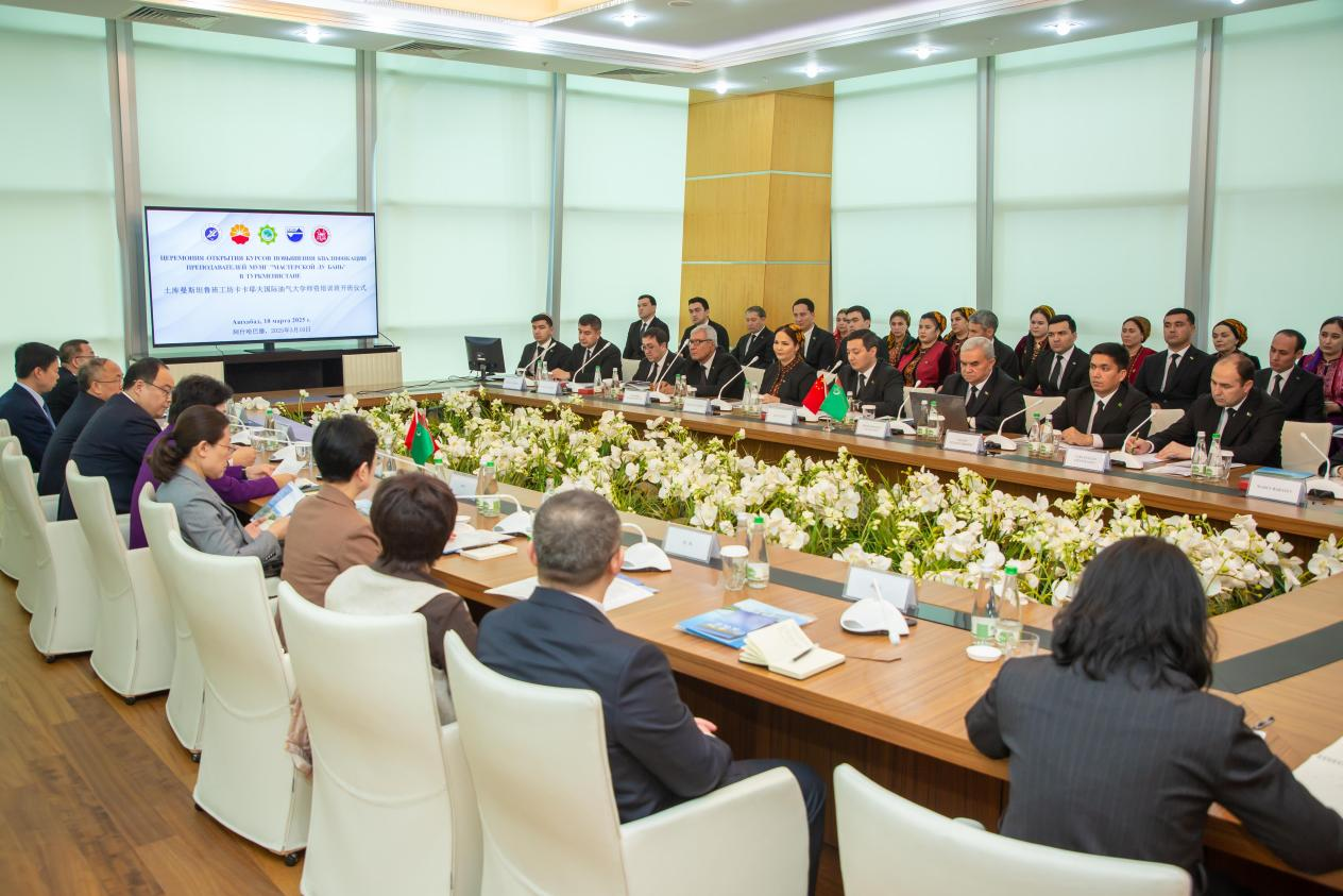 3月10日上午,“土庫曼斯坦魯班工坊卡卡耶夫國際油氣大學師資培訓班開班儀式”在卡卡耶夫國際油氣大學舉行。土庫曼斯坦教育部副部長阿扎特·阿塔耶夫主持儀式并致辭,土庫曼斯坦教育部國際合作司司長古力娜巴特·古爾洛娃、卡卡耶夫國際油氣大學校長拜拉姆穆拉特·阿塔馬諾夫、中國駐土庫曼斯坦大使館公使銜參贊仲華、中共陜西省委教育工委書記、陜西省教育廳廳長王樹聲,西安石油大學黨委書記常江,中石油阿姆河天然氣公司總經(jīng)理張培軍等出席儀式。
