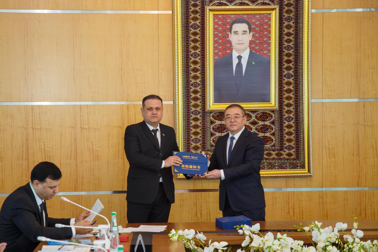 王樹聲和常江代表土庫曼斯坦“魯班工坊”中方共建單位為卡卡耶夫國際油氣大學20名參培教師頒發(fā)師資培訓錄取通知書。