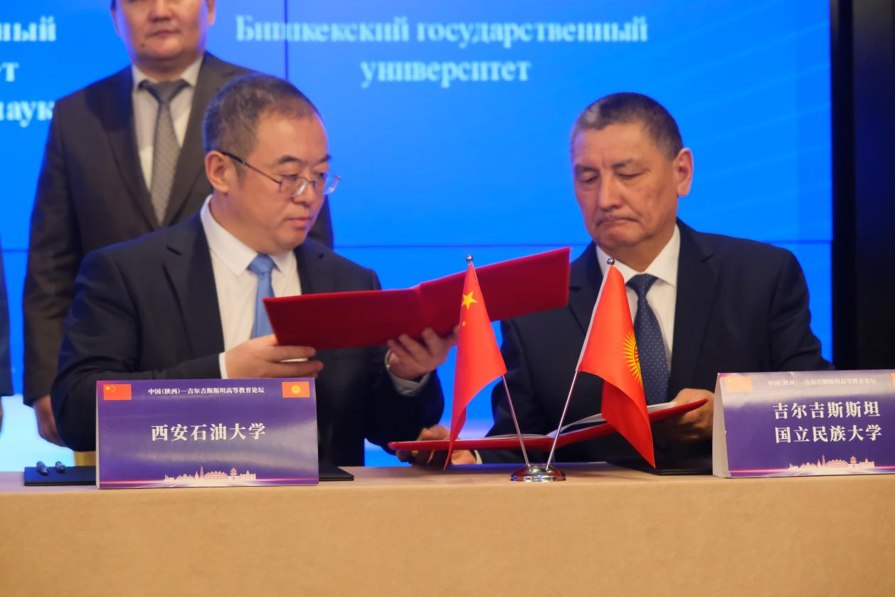論壇上,常江與吉爾吉斯斯坦國立民族大學校長多格杜爾別克·瓊托耶夫分別代表兩校簽署合作備忘錄。我校國際交流與合作處負責人董皓在院校推介環(huán)節(jié)分享了學校國際合作概況。