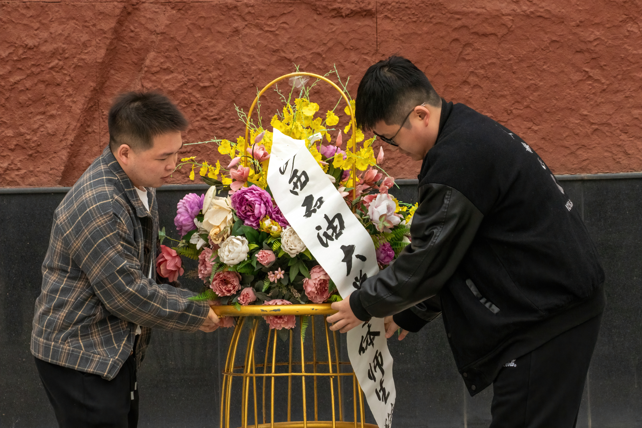 蒼松翠柏映忠魂,浩氣長存鑄豐碑。研究生黨員代表向革命烈士紀念浮雕敬獻花籃。在莊嚴肅穆的烈士就義紀念浮雕前,全體師生,整齊列隊,神情凝重,向長眠于此的英雄兒女默哀一分鐘,表達對革命先烈的深切緬懷和崇高敬意。