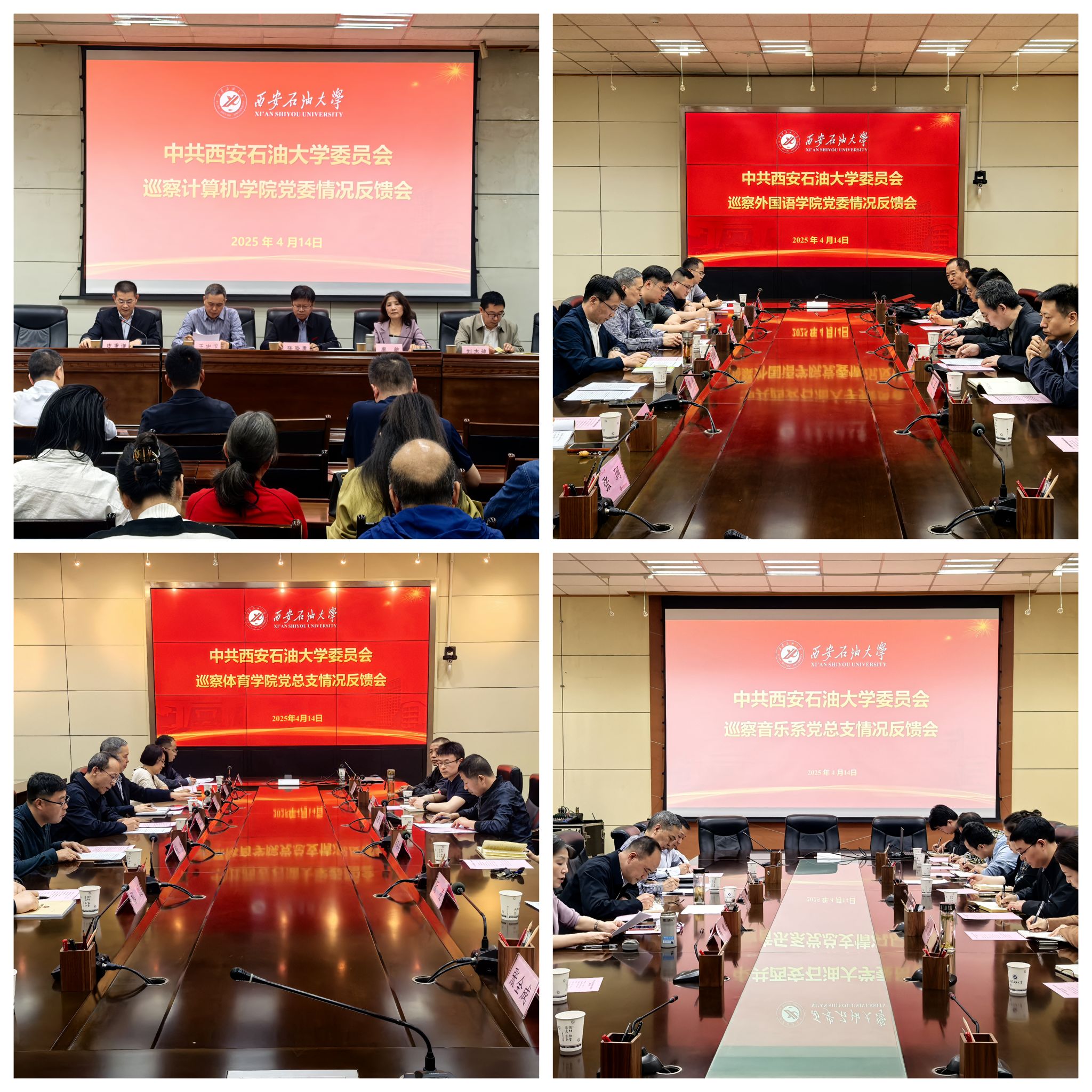 4月14日,學(xué)校召開第三屆黨委第一輪巡察情況反饋會,分別向計算機學(xué)院黨委、外國語學(xué)院黨委、體育學(xué)院黨總支以及音樂系黨總支反饋巡察情況。副校長蘇文甫、張君濤、張驍勇、趙健分別出席聯(lián)系院(系)反饋會并講話,對認(rèn)真抓好巡察整改提出明確要求。