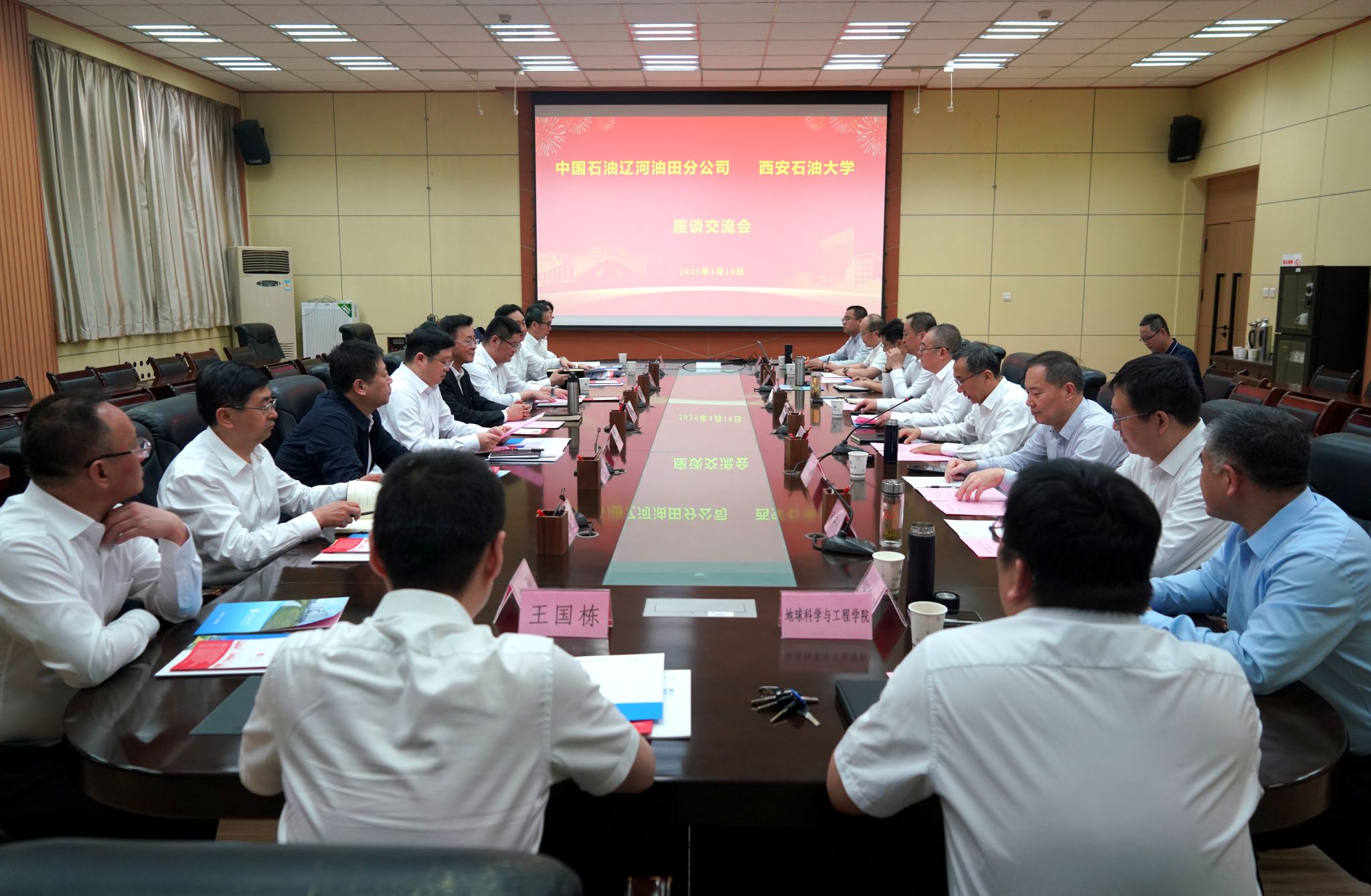 常江對齊振林一行來訪表示熱烈歡迎,對遼河油田長期以來給予學(xué)校的關(guān)心支持表示衷心感謝,對遼河油田近年來取得的成績和未來的發(fā)展規(guī)劃表示高度贊賞,對雙方下一步深度合作表示熱切期待,并梳理了學(xué)校的歷史發(fā)展脈絡(luò),回顧了學(xué)校賡續(xù)紅色血脈、傳承石油基因的歷程,闡述了學(xué)校具備的區(qū)位優(yōu)勢和發(fā)展建設(shè)情況。他指出,學(xué)校始終堅持以服務(wù)國家能源戰(zhàn)略和地方經(jīng)濟發(fā)展為己任,近年來秉持開放辦學(xué)理念,積極推進產(chǎn)學(xué)研深度融合,著力推動對外合作,相繼成立了卓越工程師學(xué)院、碳中和未來技術(shù)研究院、邊際油氣開發(fā)技術(shù)研究院、能源人工智能研究院等科研機構(gòu),致力于把學(xué)??萍?、人才等優(yōu)勢,同行業(yè)的發(fā)展所需、特色優(yōu)勢相結(jié)合。截至目前,學(xué)校已與多家石油石化企業(yè)建立了良好的合作關(guān)系,在科技攻關(guān)、成果轉(zhuǎn)化、人才培養(yǎng)等方面取得了顯著成效。他表示,西石大和遼河油田同根同源,雙方具有深厚的歷史淵源、廣泛的合作基礎(chǔ)和光明的合作前景。希望雙方以此次座談為契機,在既定合作基礎(chǔ)上,進一步建立更加緊密的合作關(guān)系,在黨建共建、科研聯(lián)合攻關(guān)、科技成果轉(zhuǎn)化、人才聯(lián)合培養(yǎng)、獎項聯(lián)合申報、學(xué)生實習(xí)就業(yè)、員工教育培訓(xùn)等方面深度合作,把校企合作的規(guī)劃圖、路線圖變成施工圖、實景圖,共同擔(dān)負起服務(wù)油氣行業(yè)發(fā)展的使命擔(dān)當(dāng),不斷把校企合作推向新高度,奮力譜寫校企合作新篇章,攜手鑄就校企合作新典范,為保障國家能源安全做出新的更大貢獻。