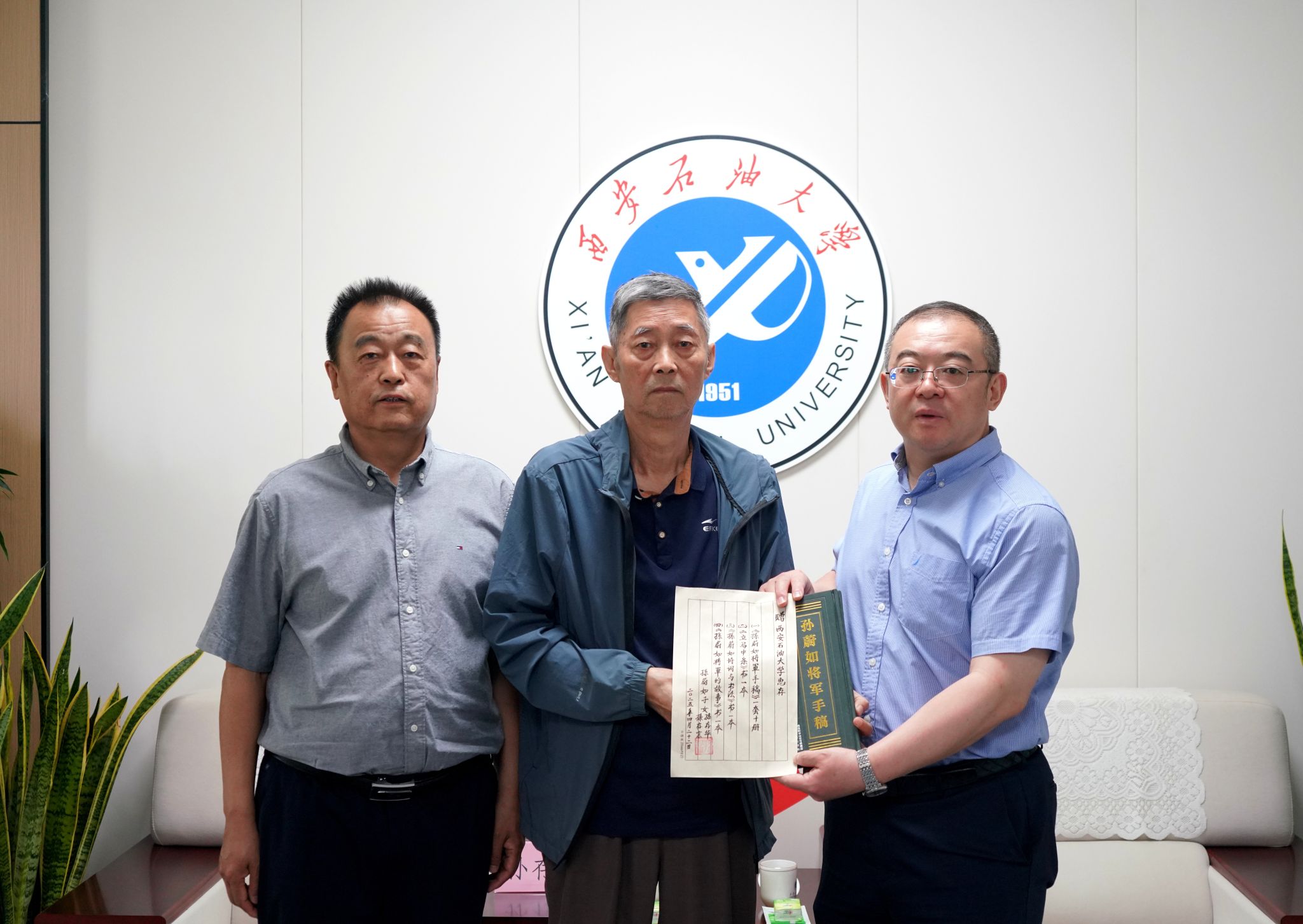 捐贈(zèng)儀式上,常江代表學(xué)校接收捐贈(zèng),并對(duì)孫存京先生表示了誠(chéng)摯的感謝。常江指出,西安石油大學(xué)是一所流淌著紅色血液、具有厚重紅色基因的大學(xué),是由習(xí)仲勛等老一輩無產(chǎn)階級(jí)革命家親切關(guān)懷、倡導(dǎo)創(chuàng)立,最早建設(shè)、長(zhǎng)期布局在我國(guó)西北地區(qū)的唯一一所以石油石化為特色的多科性普通高等學(xué)校。它的前身西北石油工業(yè)學(xué)校,由西北石油干部學(xué)校和陜西私立力行中學(xué)兩部分組成。陜西私立力行中學(xué)誕生于抗戰(zhàn)時(shí)期民族危亡之際,是杜斌丞先生倡導(dǎo)國(guó)立北平師范大學(xué)在陜同學(xué)會(huì),為解決京、津、滬等各地學(xué)生因受抗戰(zhàn)影響相繼來陜的求學(xué)問題,合力捐薪創(chuàng)辦的一所學(xué)校,在創(chuàng)辦時(shí)期就得到了孫蔚如將軍的鼎力相助。常江表示,習(xí)近平總書記寄語(yǔ)全黨,不管走多遠(yuǎn),都不能忘記我們來時(shí)的路。值此抗戰(zhàn)勝利80周年之際,孫將軍作為陜籍抗日名將和陜西人的驕傲,我們非常榮幸獲贈(zèng)他的手稿等珍貴書籍,這不僅豐富了學(xué)校檔案館館藏,更為學(xué)校研究陜軍抗戰(zhàn)歷史、開展愛國(guó)主義教育提供了最真實(shí)的資料和生動(dòng)教材。