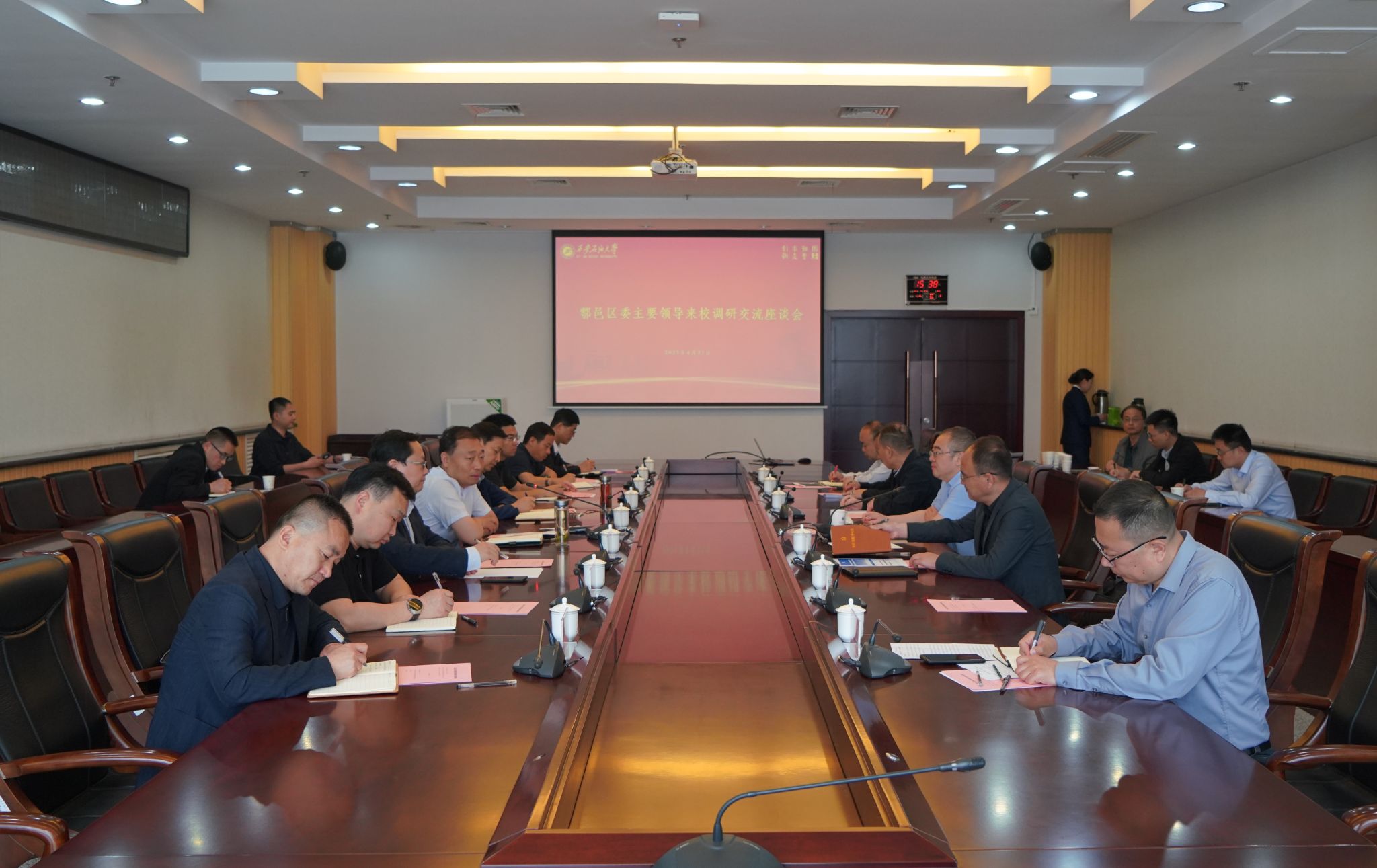 4月27日下午,鄠邑區(qū)委書記李化一行來校就進一步校地合作事宜進行交流座談,區(qū)領導舒元華、陳鵬飛和區(qū)委區(qū)政府相關職能部門負責人參加了座談。座談會由校黨委書記常江主持,副校長趙健出席會議。我校黨委辦公室(校長辦公室)、保衛(wèi)處、發(fā)展規(guī)劃處、基建處、后勤處負責人參加了座談會。