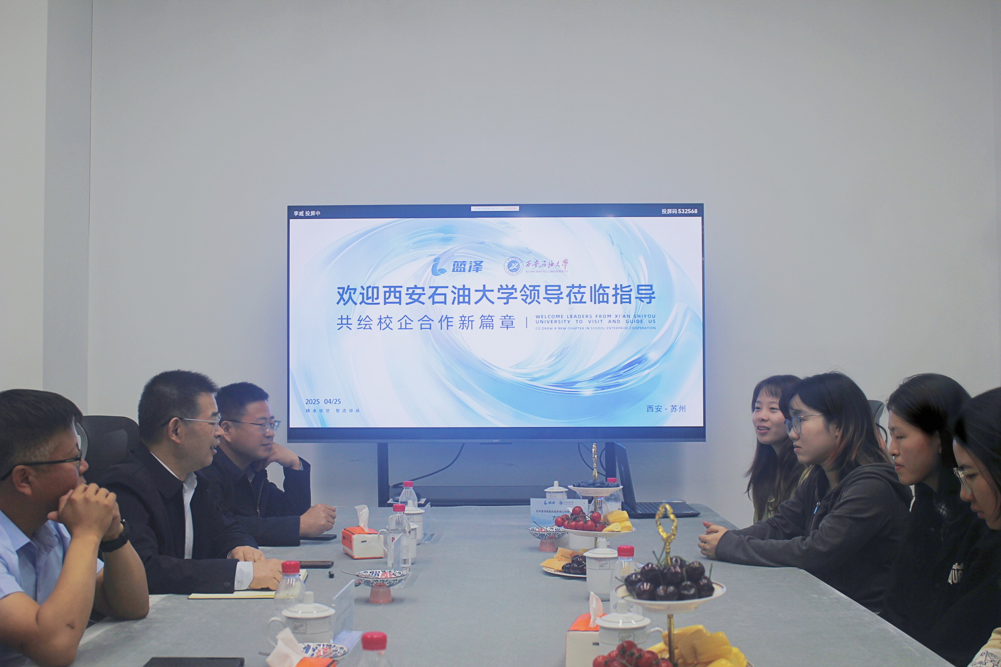 座談會(huì)上,張驍勇介紹了學(xué)校第三次黨代會(huì)提出的發(fā)展目標(biāo)和任務(wù),以及在學(xué)科建設(shè)、科學(xué)研究、人才培養(yǎng)、服務(wù)社會(huì)等方面取得的成績(jī)。張驍勇表示,近年來(lái)學(xué)校扎實(shí)推進(jìn)“三項(xiàng)改革”走深走實(shí),積極開(kāi)展基礎(chǔ)性理論研究與能源行業(yè)等社會(huì)經(jīng)濟(jì)發(fā)展深度融合,注重科研成果轉(zhuǎn)化,在“秦創(chuàng)原”等項(xiàng)目建設(shè)方面取得了突出成績(jī),這些為培養(yǎng)符合社會(huì)需求的人才提供了堅(jiān)實(shí)基礎(chǔ)。張驍勇強(qiáng)調(diào),蘇州藍(lán)澤智能科技有限公司的發(fā)展理念和產(chǎn)業(yè)布局緊跟人工智能時(shí)代需求,與學(xué)校的合作空間廣闊。希望借助蘇州藍(lán)澤的資源和平臺(tái),學(xué)校相關(guān)學(xué)院以畢業(yè)生供需為紐帶,深度參與公司的產(chǎn)品研發(fā)、技術(shù)迭代升級(jí)等領(lǐng)域合作,組織教師來(lái)公司交流學(xué)習(xí),把校企合作項(xiàng)目落實(shí)落細(xì)。