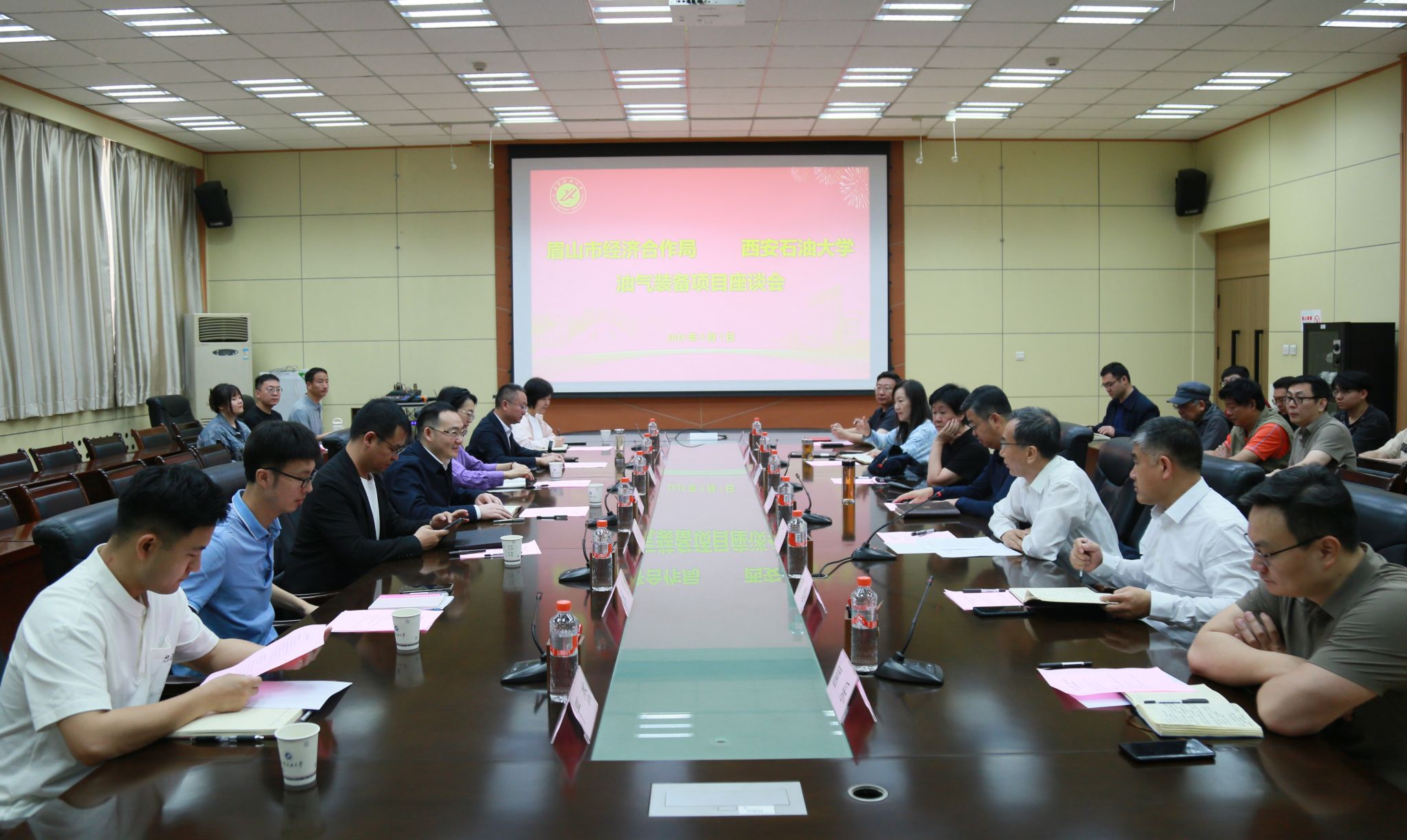 5月7日上午,眉山市經濟合作局局長周波一行來校洽談交流油氣裝備項目投資事宜,眉山市經濟合作局副局長王秀彬、廣州盛屹投資管理有限公司董事總經理徐靜波、洪雅縣經濟合作局局長白修明等陪同來訪。會議由校黨委副書記張木主持,校長王進富出席并講話。電子工程學院二級教授周靜及校友工作與合作交流處、科研處、資產經營公司、土木工程學院負責同志參加座談。