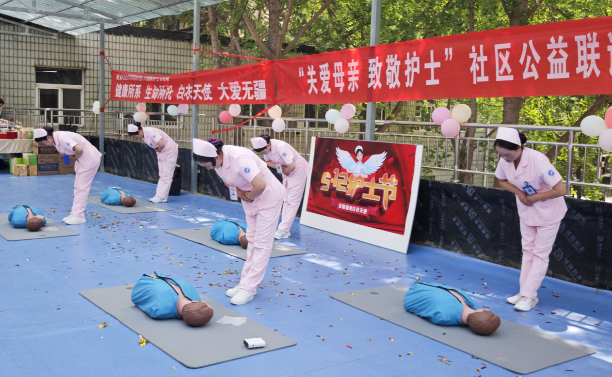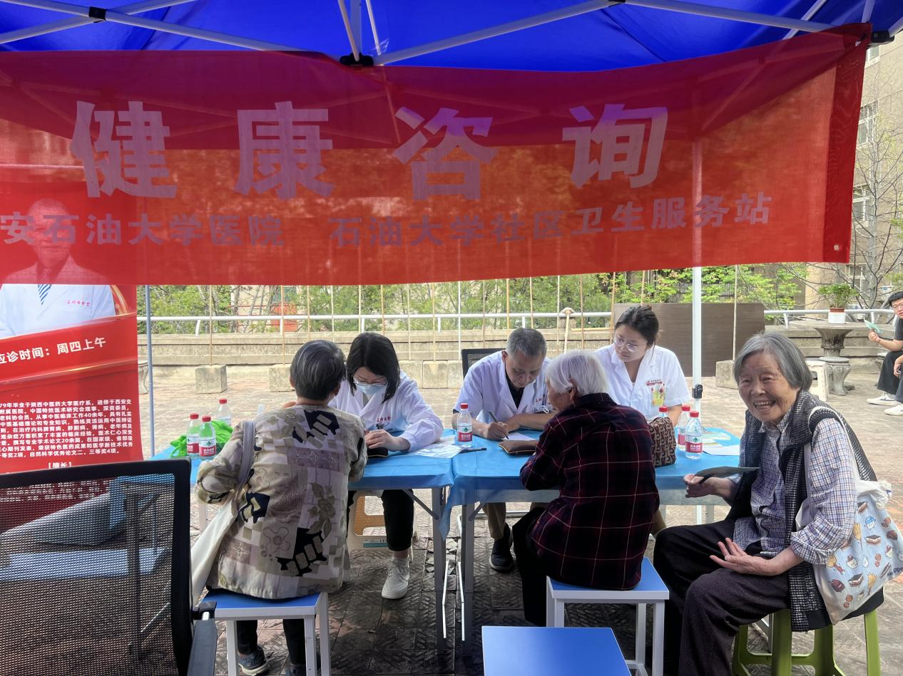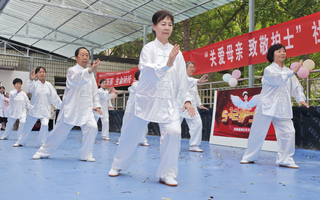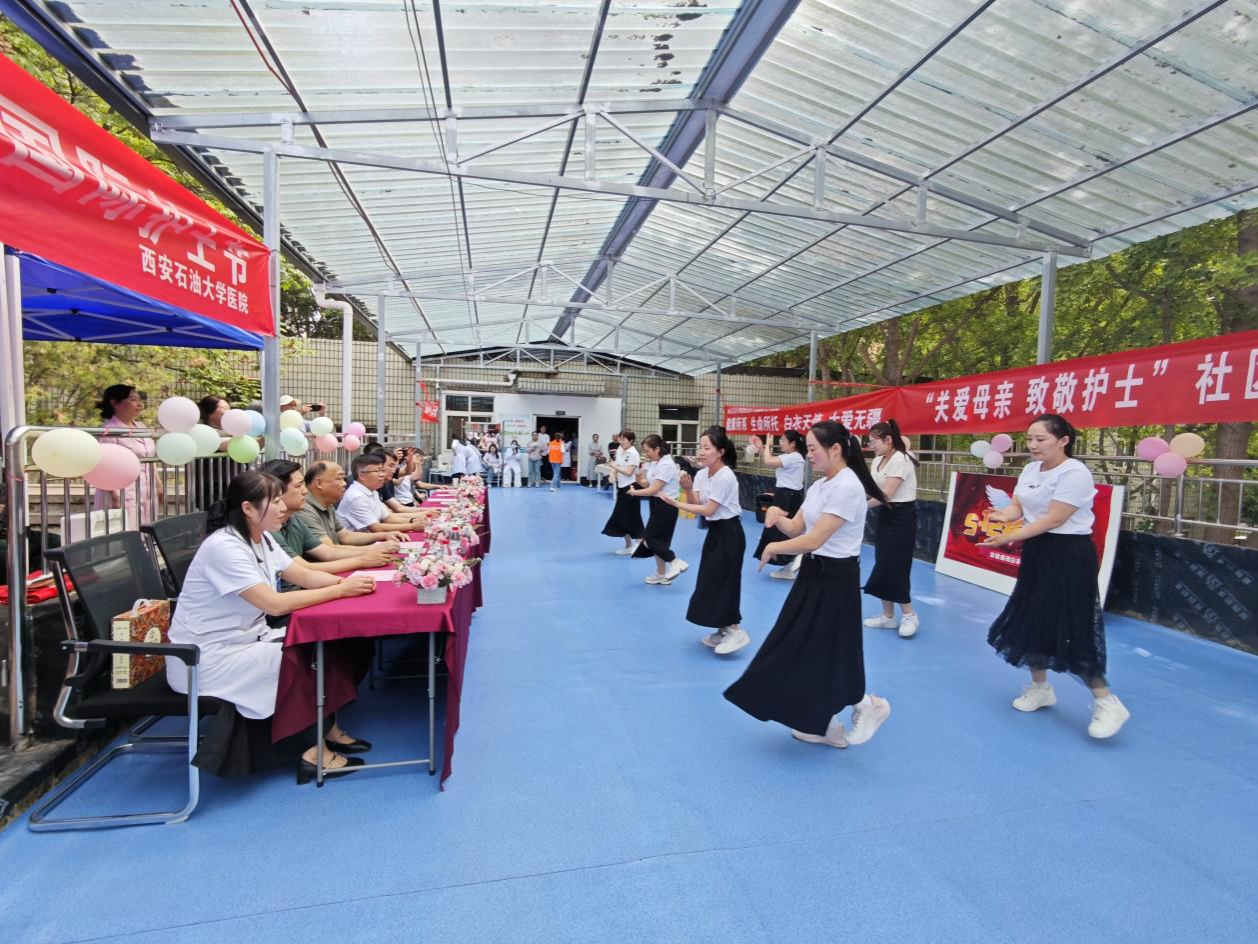 校醫(yī)院護(hù)理團(tuán)隊(duì)宣傳示范心肺復(fù)蘇等突發(fā)急救技能并邀請(qǐng)中醫(yī)專家現(xiàn)場(chǎng)為師生問診,為社區(qū)居民提供健康咨詢。離退休老同志與西安圣宏養(yǎng)老服務(wù)中心帶來歌舞表演,以藝術(shù)形式傳遞愛與祝福。