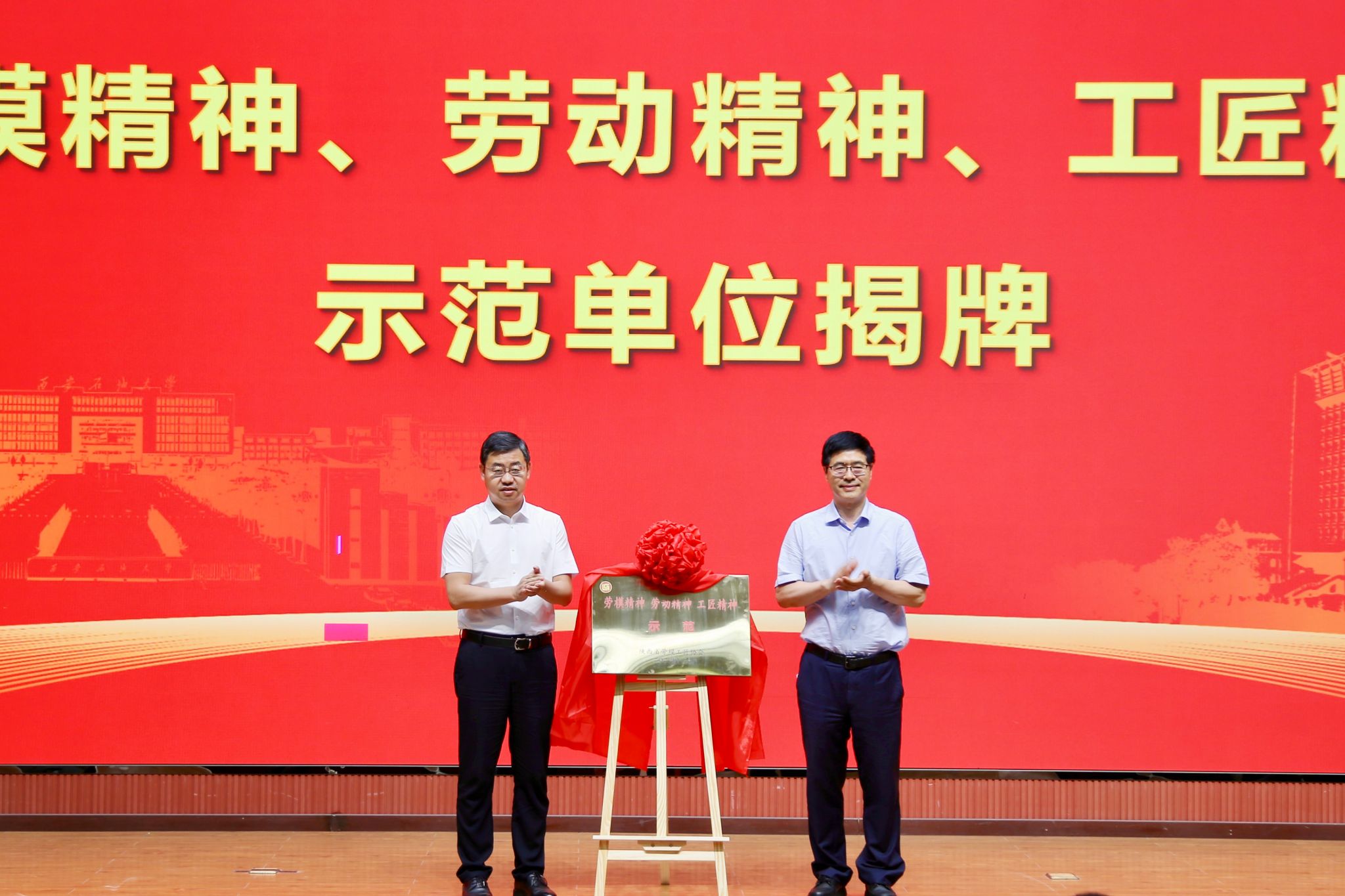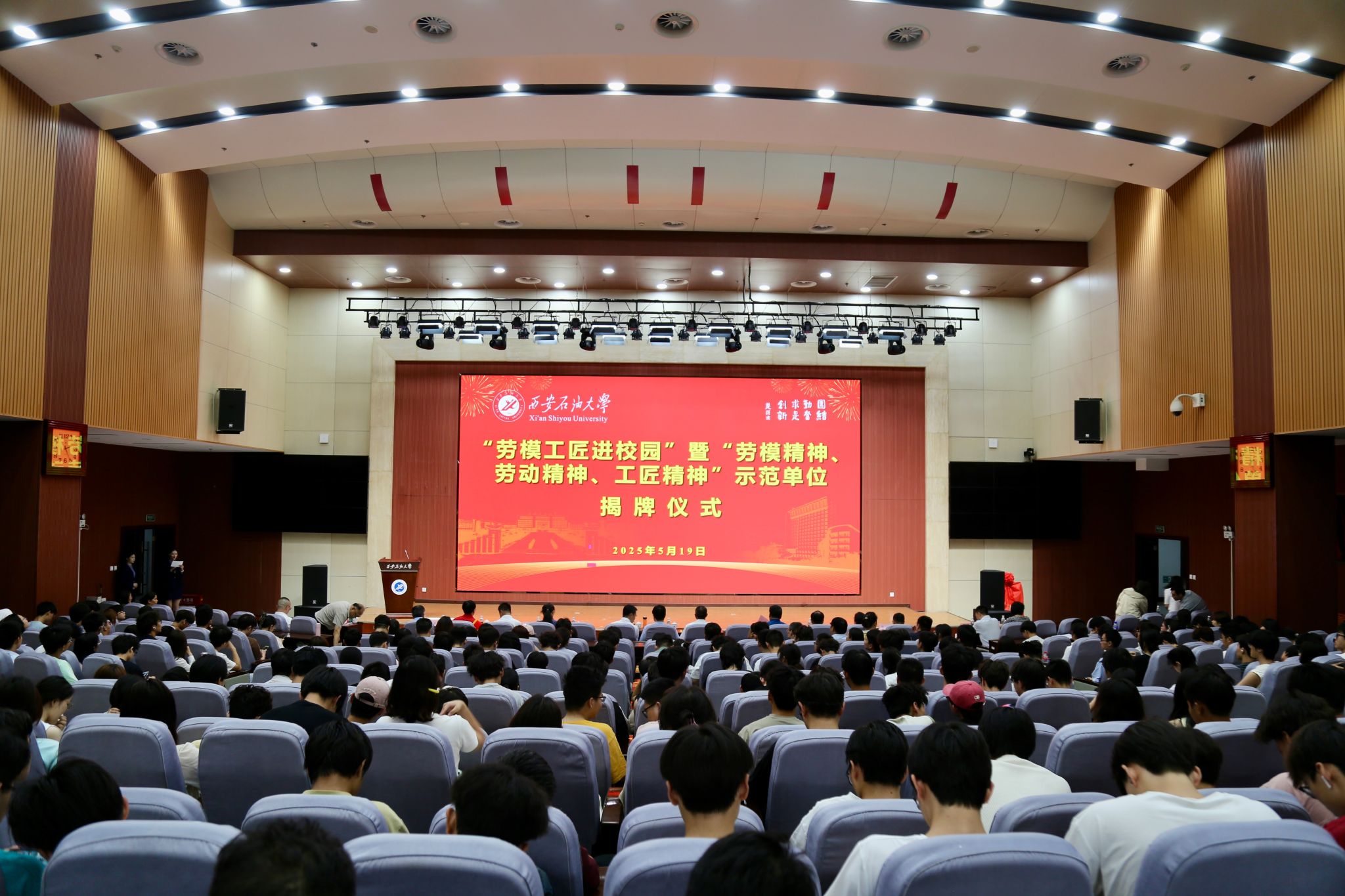 5月19日下午,我校在鄠邑校區(qū)圖書館弘石學術報告廳舉行“勞模工匠進校園”暨“勞模精神、勞動精神、工匠精神”示范單位揭牌儀式。陜西省勞模工匠協(xié)會會長蘭新哲,副會長張向陽、石軍利,延長油田股份有限公司工會副主席崔完生,勞模工匠代表:延長油田志丹采油廠黨委書記薛濤、吳起采油廠油田工程作業(yè)大隊事故井處理崗工段長張發(fā)珠,我校校長王進富出席儀式。儀式由我校黨委委員、副校長張驍勇主持。