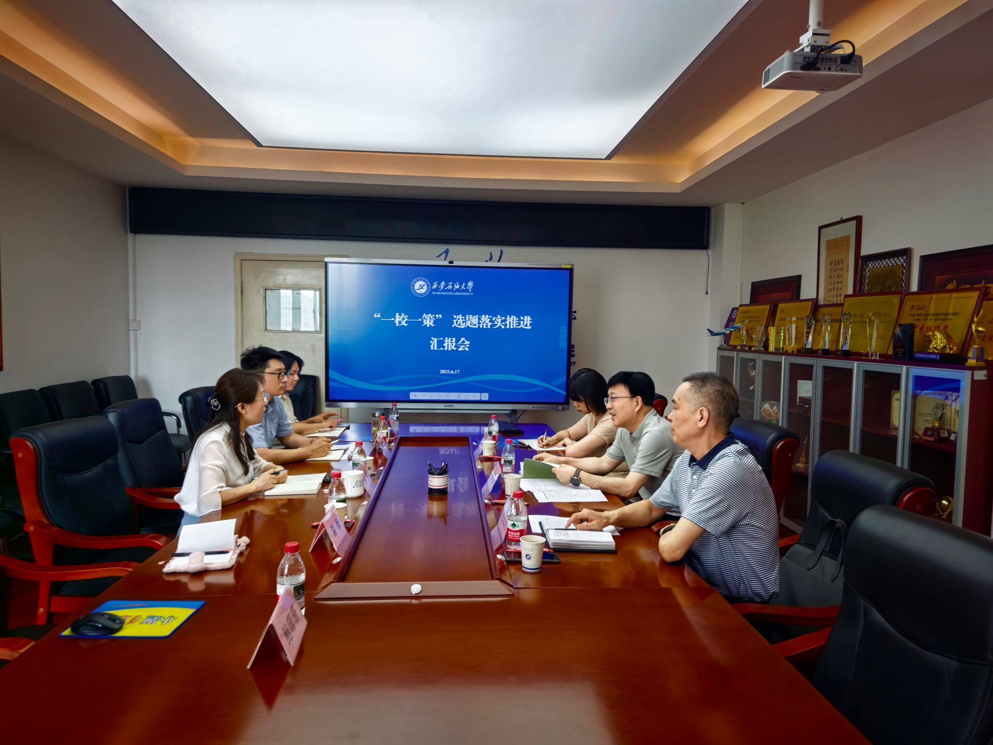在認(rèn)真聽取匯報后,王輝強(qiáng)對“一校一策”項目取得的積極進(jìn)展和顯著成效給予充分肯定,并圍繞服務(wù)國家戰(zhàn)略和落實上級工作部署提出四點指導(dǎo)意見:一是要提高站位深化認(rèn)識。強(qiáng)調(diào)將“推進(jìn)中亞合作辦學(xué)”作為今年“一校一策”選題,是學(xué)校服務(wù)國家能源安全戰(zhàn)略、深化國際合作的務(wù)實舉措,意義重大,影響深遠(yuǎn)。國際交流與合作處(國際教育學(xué)院)領(lǐng)導(dǎo)班子認(rèn)識深刻、思路清晰,為項目順利推進(jìn)奠定了良好基礎(chǔ)。要進(jìn)一步增強(qiáng)責(zé)任感、使命感和緊迫感,將思想和行動統(tǒng)一到服務(wù)國家發(fā)展大局和推進(jìn)學(xué)校事業(yè)高質(zhì)量發(fā)展上來,確保方向不偏、力度不減。二是要主動擔(dān)當(dāng)攻堅克難。面對建設(shè)周期緊、跨國協(xié)調(diào)難等挑戰(zhàn),工作專班展現(xiàn)出強(qiáng)烈的責(zé)任擔(dān)當(dāng)和高效的執(zhí)行能力。不僅高質(zhì)量完成了預(yù)定計劃,更在推進(jìn)中主動謀劃、銳意進(jìn)取、積極拓展,創(chuàng)造性地開展了多項富有成效的工作,推動關(guān)鍵合作取得實質(zhì)性進(jìn)展,為后續(xù)工作注入強(qiáng)大信心和動力,也是項目成功的關(guān)鍵保障。三是要規(guī)范管理嚴(yán)控風(fēng)險。目前項目各項工作按任務(wù)清單和時間節(jié)點有序推進(jìn),進(jìn)展順利。下一步要著力統(tǒng)籌效率和規(guī)范,嚴(yán)格遵守國家財經(jīng)紀(jì)律和學(xué)校各項規(guī)章制度。要確保經(jīng)費保障到位、使用科學(xué)高效,積極防范和化解風(fēng)險,確保項目執(zhí)行經(jīng)得起檢驗。四是要協(xié)同聯(lián)動持續(xù)發(fā)力。要充分發(fā)揮工作專班統(tǒng)籌協(xié)調(diào)機(jī)制作用,加強(qiáng)和部門之間、學(xué)院之間信息共享與協(xié)同聯(lián)動。紀(jì)檢監(jiān)察機(jī)構(gòu)將靠前監(jiān)督、精準(zhǔn)發(fā)力,及時協(xié)調(diào)解決困難,對推進(jìn)不利的單位加強(qiáng)提醒督辦。各項工作要乘勢而上、再接再厲,認(rèn)真對照“時間表”“路線圖”扎實推進(jìn),確保高質(zhì)量完成年度目標(biāo),全力推動學(xué)校國際化辦學(xué)水平實現(xiàn)新躍升,為服務(wù)共建“一帶一路”高質(zhì)量發(fā)展貢獻(xiàn)“西石大”力量。