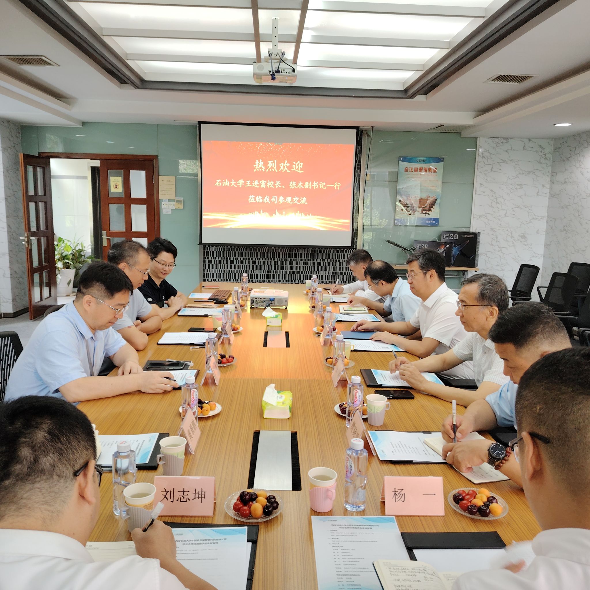 我??蒲刑帯⑿S压ぷ髋c合作交流處、電子工程學院、計算機學院負責同志隨同走訪。
