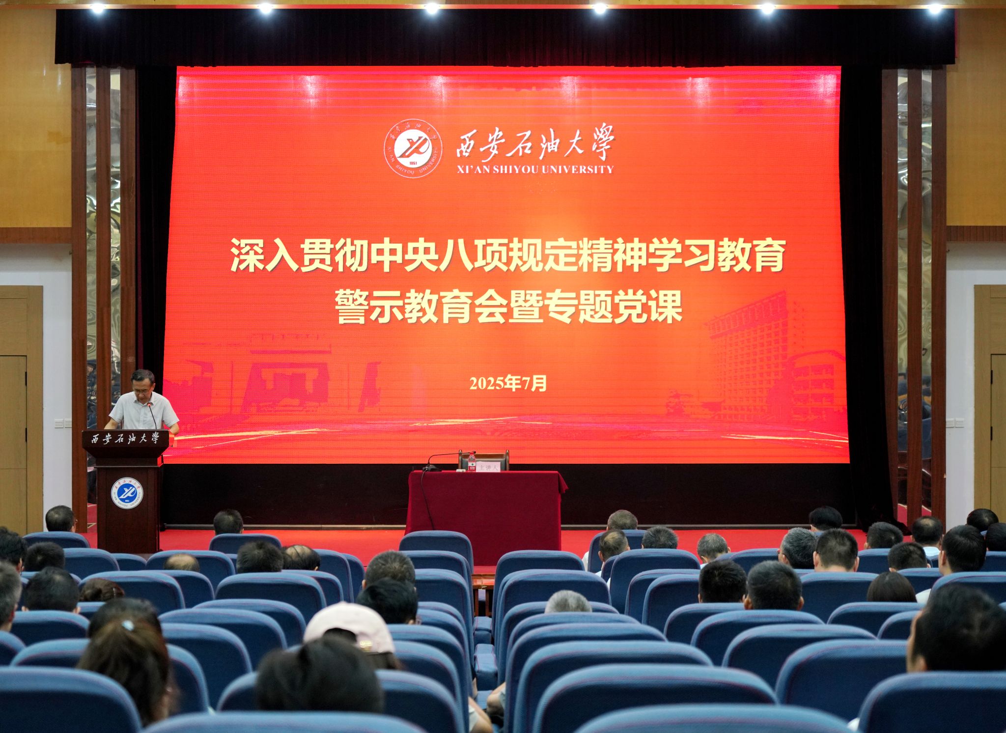 7月9日,學(xué)校召開深入貫徹中央八項規(guī)定精神學(xué)習(xí)教育警示教育大會暨專題黨課,學(xué)習(xí)習(xí)近平總書記關(guān)于加強黨的作風(fēng)建設(shè)的重要論述和中央、省委關(guān)于學(xué)習(xí)教育的最新安排部署,集中觀看警示教育片《鐵規(guī)矩硬杠杠》。校黨委書記常江講授專題黨課,校黨委副書記、紀(jì)委書記、監(jiān)察專員王輝強通報違反中央八項規(guī)定及其實施細則精神典型案例,校黨委副書記張木主持會議。