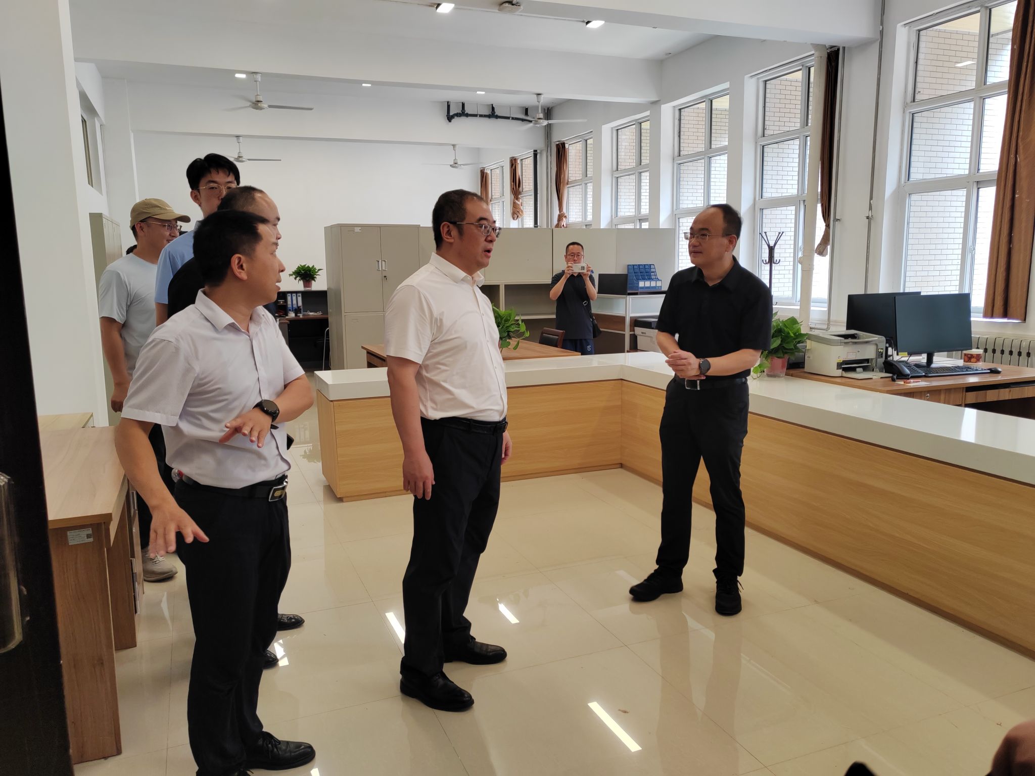 7月19日上午,校黨委書記常江帶隊檢查學校行政主體搬遷情況。校黨委委員、副校長趙健,相關職能部門負責人陪同檢查。