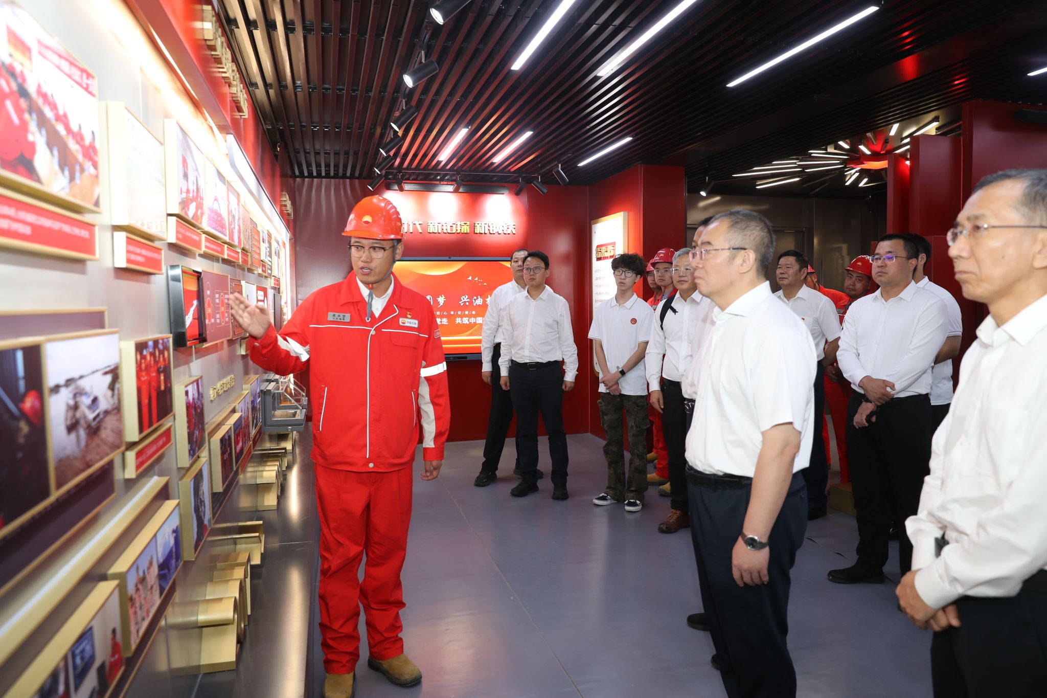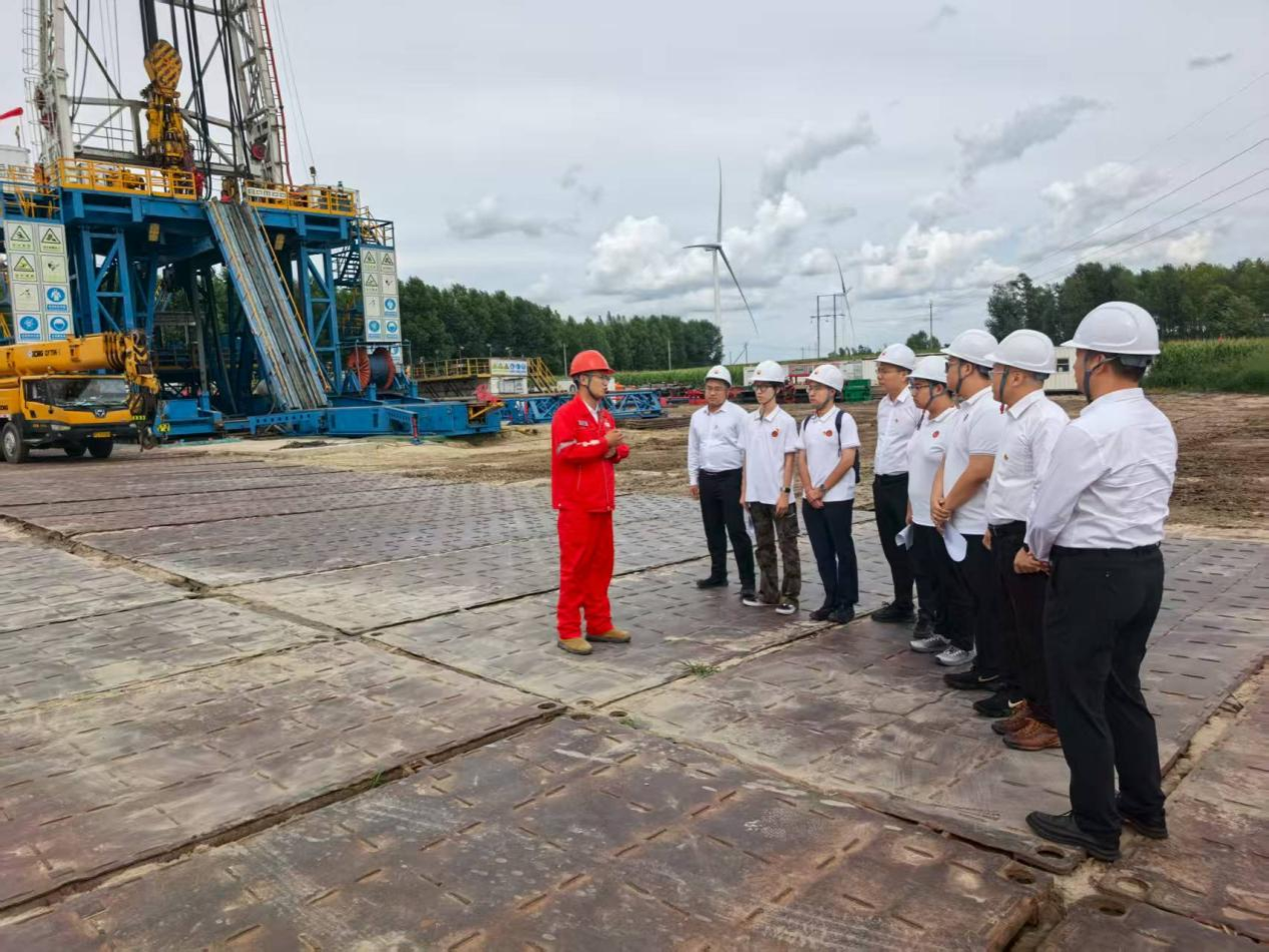 1205鉆井隊隊長段永堅在鉆井工作現(xiàn)場為師生代表講授了一堂別開生面的生動黨課。這不僅是一次鐵人精神的深度傳播,更是一場將紅色基因融入血脈的深刻實踐,讓師生們在鉆井平臺的轟鳴聲中,真切觸摸到石油精神的厚重根基。