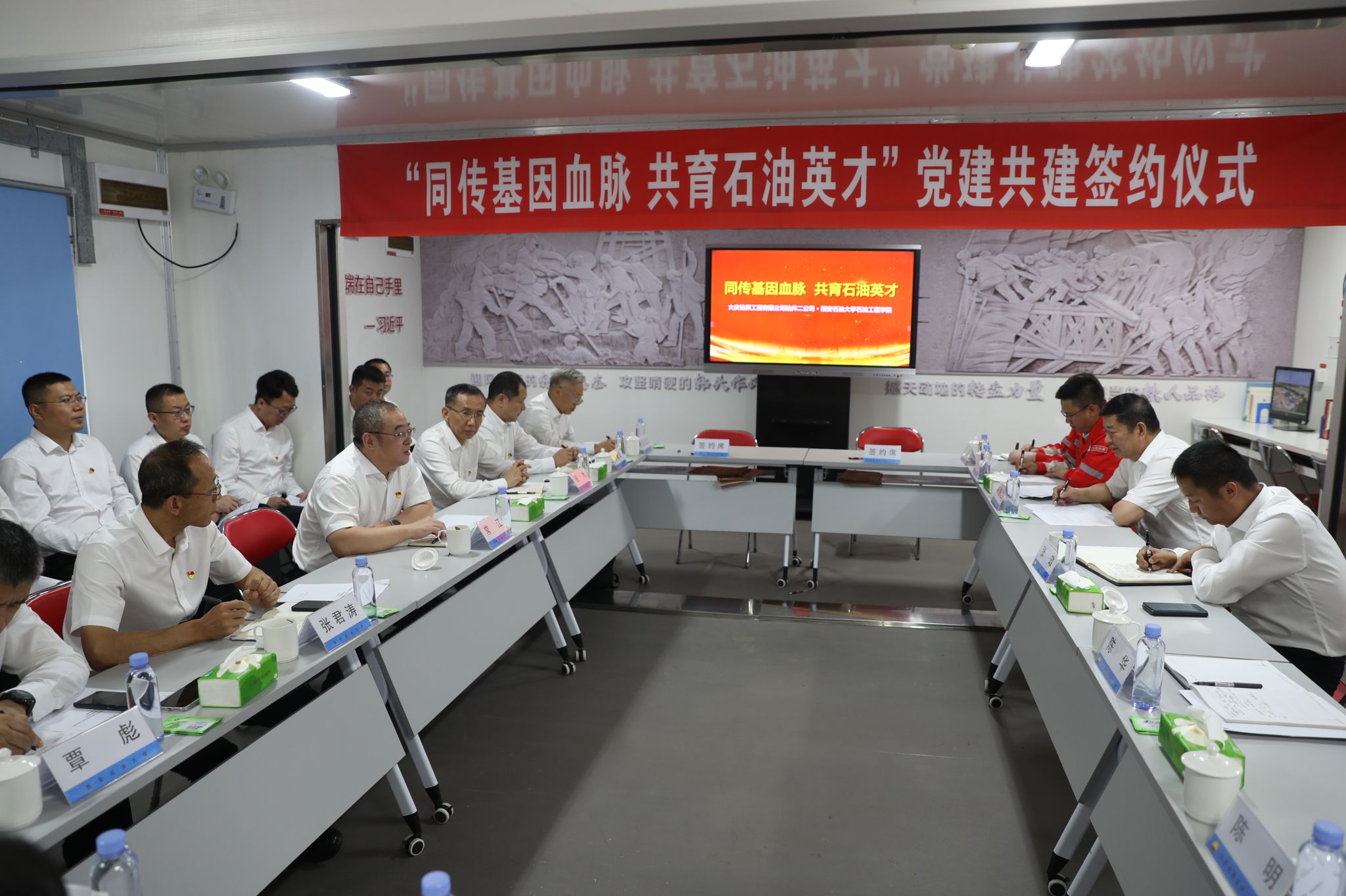 學(xué)校黨委辦公室(校長辦公室)、組織部、科研處、校友工作與合作交流處、繼續(xù)教育學(xué)院(培訓(xùn)中心),大慶鉆探黨委組織部、大慶鉆探鉆井二公司黨委組織部等部門負(fù)責(zé)人參加了上述活動,并共同見證了共建協(xié)議的簽署。此次黨建共建協(xié)議的的簽署,是學(xué)校深化“石油精神辦學(xué)、鐵人精神育人、延安精神鑄魂”鐵人大思政育人格局的重要實踐。通過組織共建,將大慶精神、鐵人精神融入學(xué)生培養(yǎng)全過程,打造“井場思政課”等特色育人平臺,讓學(xué)生在實踐學(xué)習(xí)中領(lǐng)悟“三老四嚴(yán)”優(yōu)良作風(fēng),培育具有能源報國使命擔(dān)當(dāng)?shù)男聲r代石油人才,為保障國家能源安全提供堅實的人才支撐。