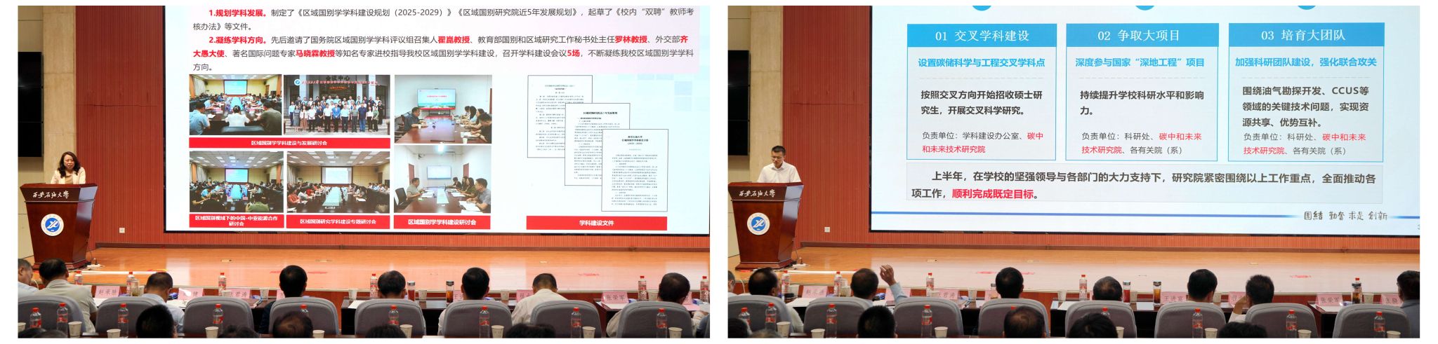 在肯定成績的同時,王進富深刻分析了學校在發(fā)展過程中存在的短板與不足,以及當前高等教育領域發(fā)展變革帶來的機遇與挑戰(zhàn)。他強調,下半年是完成全年目標任務的關鍵期,全校上下必須堅持目標導向和問題導向:要以開好“人才工作會、年中工作會、‘十五五’規(guī)劃務虛會”三個會為依托,賦能“三個年”建設,持續(xù)深化教育科技人才一體改革,奮力實現(xiàn)黨代會確立的三大目標;要以“完善三全育人體系、優(yōu)化育人品牌活動、強化有組織就業(yè)”三項措施全面提升育人質量;要以推進中亞合作、國際科研合作、中外聯(lián)合辦學三項重點,形成開放辦學新優(yōu)勢;要加快落實基礎教育實質性合作、群眾急難愁盼需求、“一老一小”保障等三項民生工作,塑造幸福西石大新形象。同時要舉全校之力做好五方共建、群像揭幕、問題整改等重點工作。