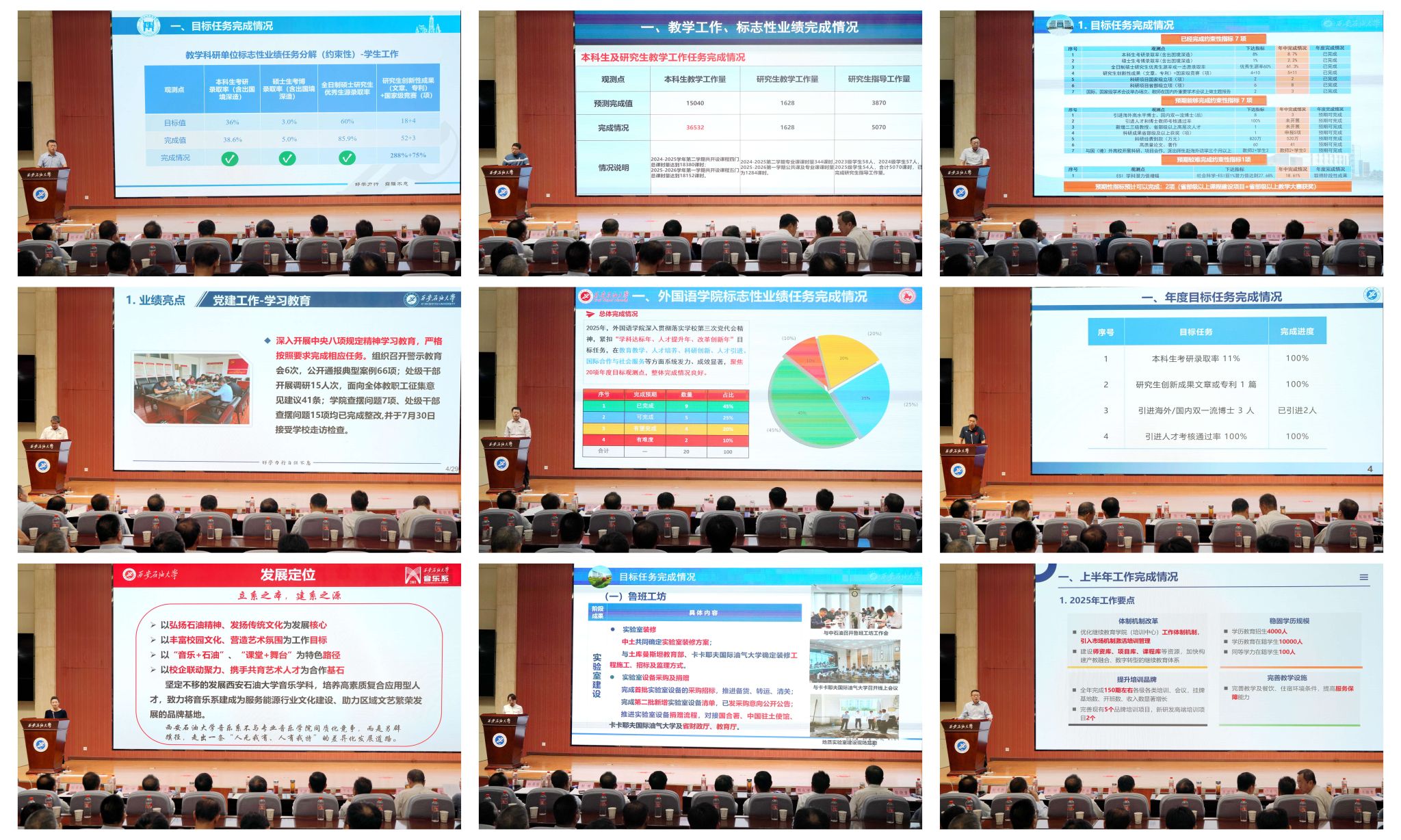 會上,20個院(系)和6個職能部門圍繞學校2025年度工作要點,總結匯報了上半年目標任務完成情況、特色亮點工作、存在的問題及下半年工作計劃。