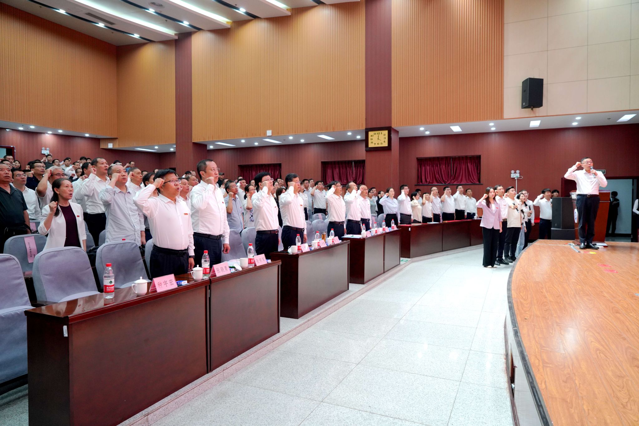 在教師宣誓儀式上,經(jīng)濟(jì)管理學(xué)院吳勛教授領(lǐng)誓,全體參會人員起立,莊嚴(yán)宣誓,表達(dá)了為黨和人民的教育事業(yè)而努力奮斗的決心,彰顯了教師職業(yè)的責(zé)任感與使命感。