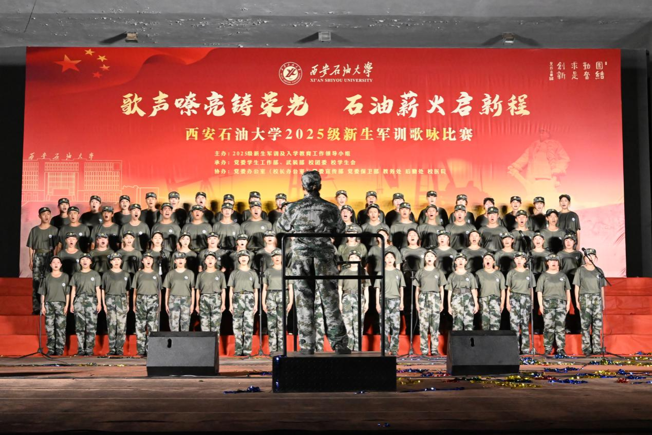我校舉辦“歌聲嘹亮鑄榮光,石油薪火啟新程”2025級(jí)新生軍訓(xùn)歌詠比賽