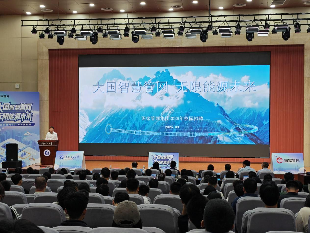 9月16日下午,國家石油天然氣管網(wǎng)集團有限公司2026屆畢業(yè)生校園招聘宣講會在我校鄠邑校區(qū)弘石報告廳隆重舉辦。國家管網(wǎng)集團相關(guān)代表,我校黨委委員、副校長種宇宏出席會議,各院(系)學(xué)生工作主要負責人,全體2026屆畢業(yè)班輔導(dǎo)員,畢業(yè)生代表400余人參加宣講活動。會議由學(xué)生工作部(處)部(處)長、就業(yè)創(chuàng)業(yè)指導(dǎo)中心主任王亮主持。