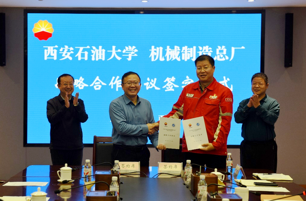 座談會(huì)上,機(jī)械工程學(xué)院院長(zhǎng)劉少胡與中國(guó)石油長(zhǎng)慶油田機(jī)械制造總廠簽訂戰(zhàn)略合作協(xié)議。
