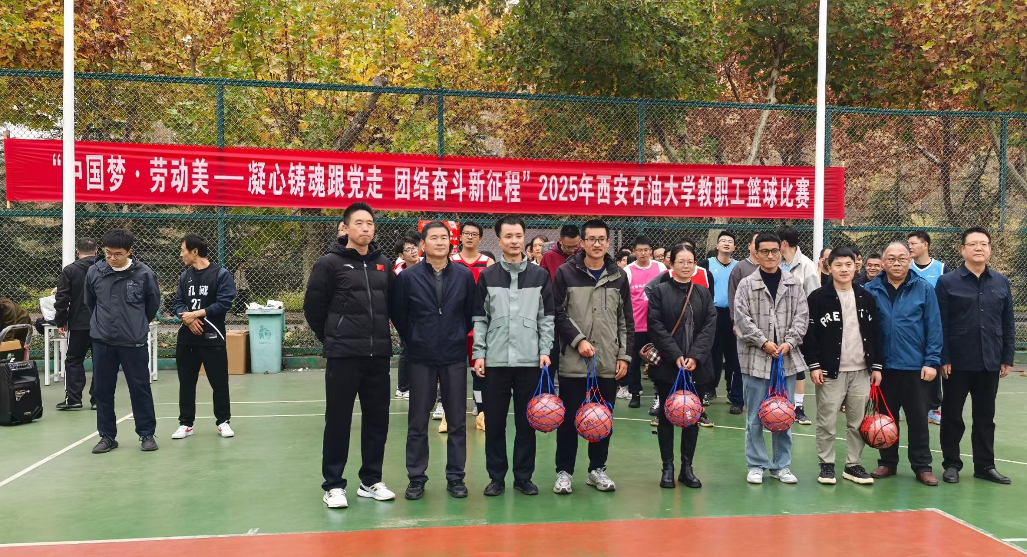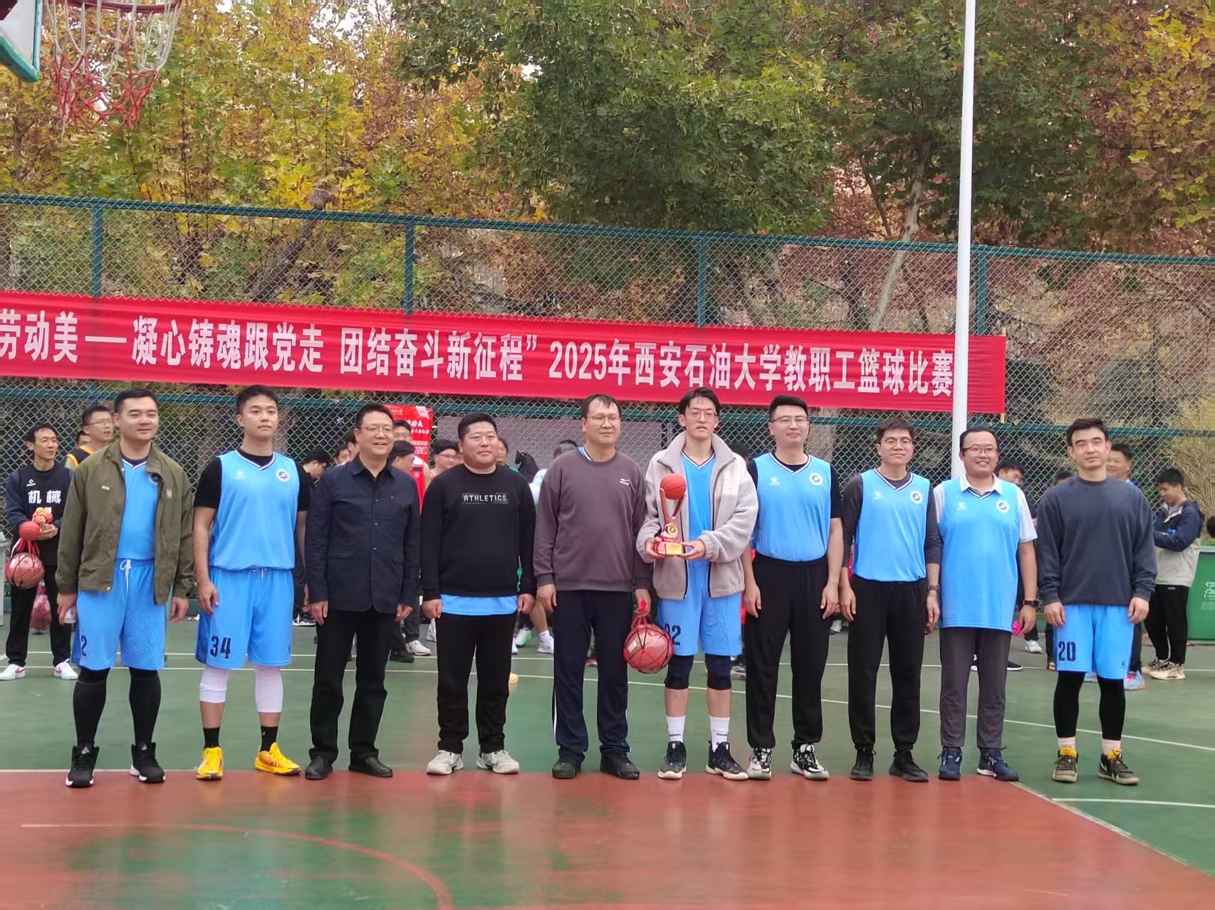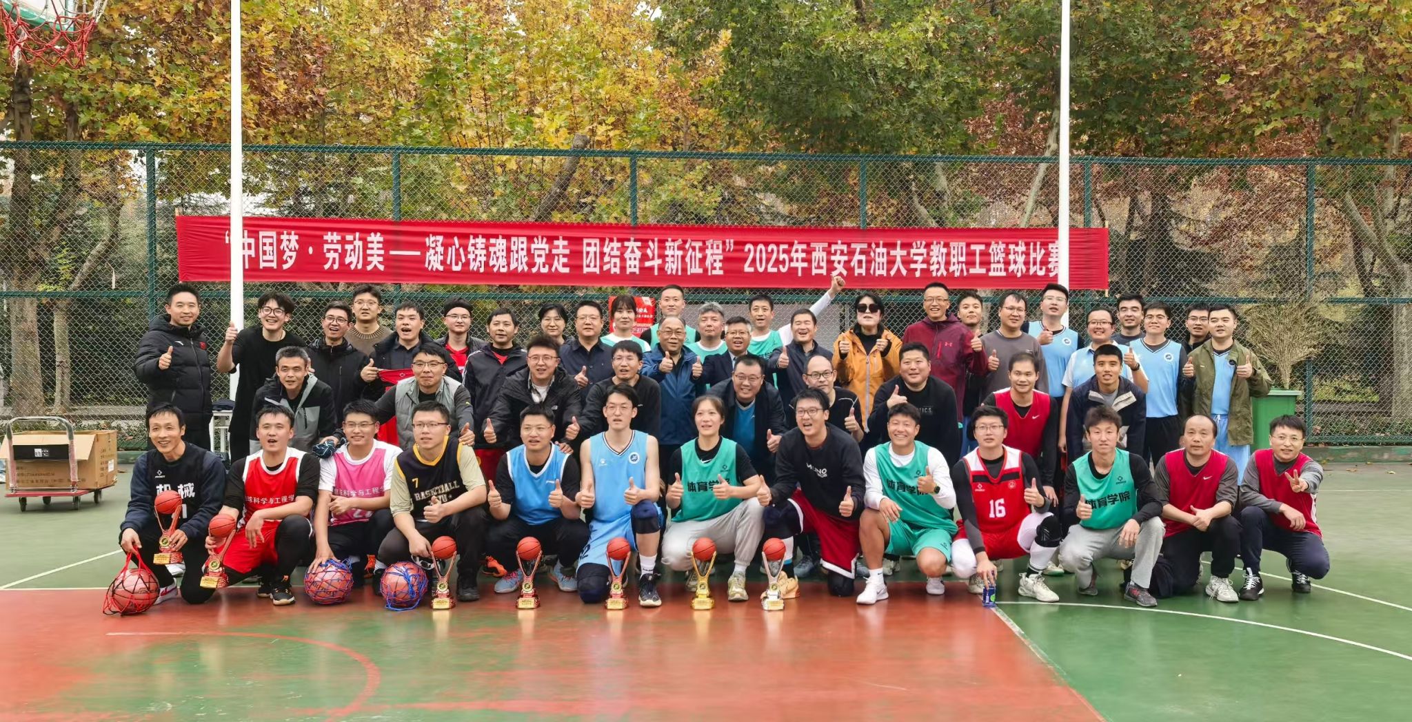 為豐富教職工業(yè)余文化生活,增強團隊凝聚力,營造積極向上的校園文化氛圍,由校工會主辦、體育學(xué)院承辦的“中國夢 勞動美——凝心鑄魂跟黨走 團結(jié)奮斗新征程”2025年西安石油大學(xué)教職工籃球賽于10月20日在我校鄠邑校區(qū)東籃球場火熱開賽。本次賽事吸引了來自全?;鶎庸?3支代表隊、共計近110名教職工運動員踴躍參與。經(jīng)過3周、30場緊張激烈的比賽角逐,賽事于11月5日圓滿落下帷幕。