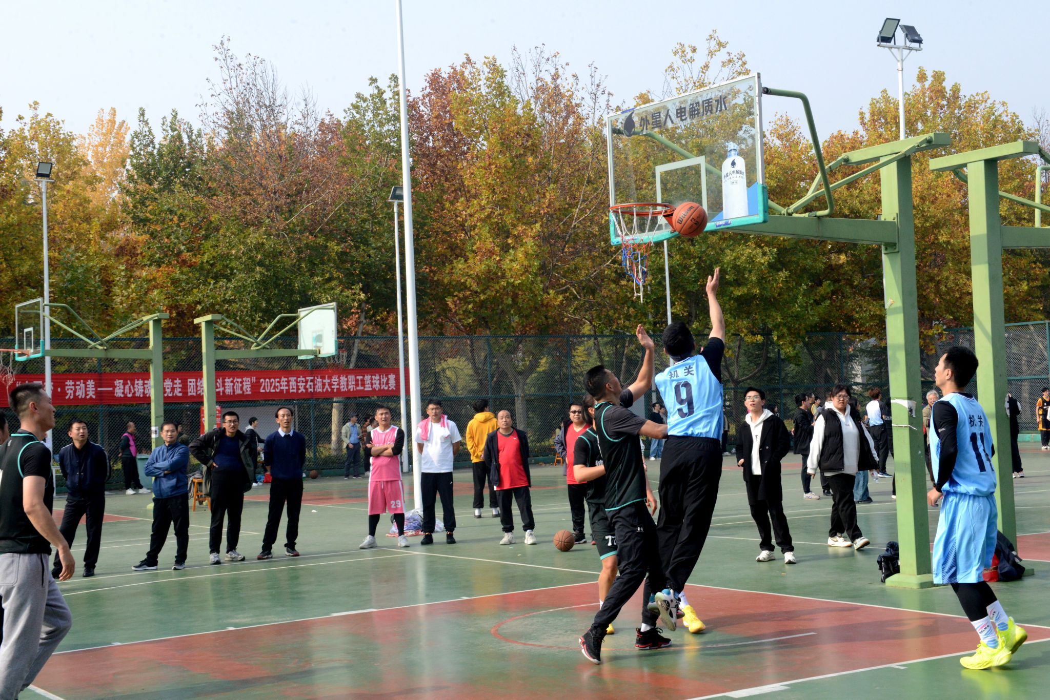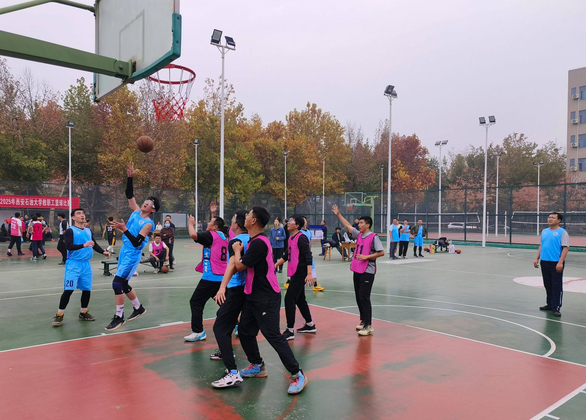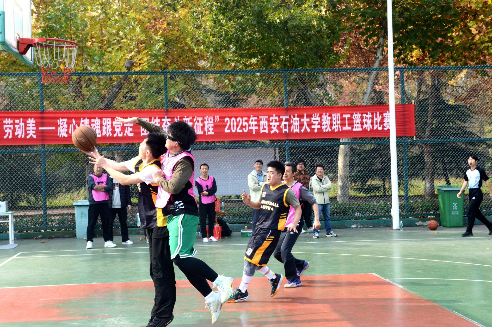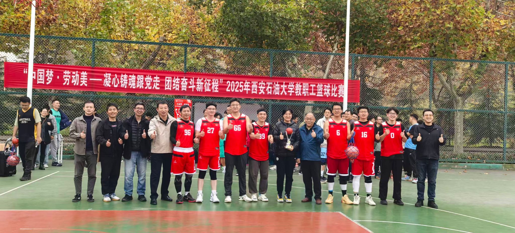 為豐富教職工業(yè)余文化生活,增強團隊凝聚力,營造積極向上的校園文化氛圍,由校工會主辦、體育學(xué)院承辦的“中國夢 勞動美——凝心鑄魂跟黨走 團結(jié)奮斗新征程”2025年西安石油大學(xué)教職工籃球賽于10月20日在我校鄠邑校區(qū)東籃球場火熱開賽。本次賽事吸引了來自全?;鶎庸?3支代表隊、共計近110名教職工運動員踴躍參與。經(jīng)過3周、30場緊張激烈的比賽角逐,賽事于11月5日圓滿落下帷幕。