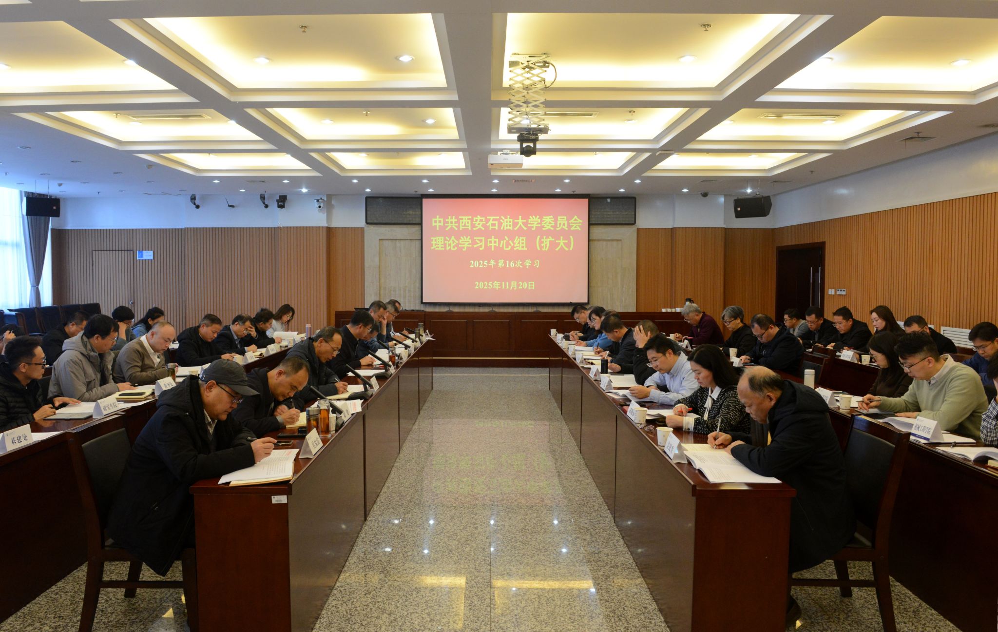 11月20日下午,校黨委理論學(xué)習(xí)中心組(擴(kuò)大)學(xué)習(xí)會(huì)在鄠邑校區(qū)第一會(huì)議室召開,深入學(xué)習(xí)領(lǐng)會(huì)習(xí)近平總書記在廣東考察時(shí)、在聽取海南自由貿(mào)易港建設(shè)工作匯報(bào)時(shí)的重要講話精神,再次專題學(xué)習(xí)《中共中央關(guān)于制定國(guó)民經(jīng)濟(jì)和社會(huì)發(fā)展第十五個(gè)五年規(guī)劃的建議》(以下簡(jiǎn)稱“《‘十五五’規(guī)劃建議》”)。校黨委副書記、校長(zhǎng)王進(jìn)富在主持學(xué)習(xí)及交流研討環(huán)節(jié),就深入領(lǐng)會(huì)和貫徹落實(shí)《“十五五”規(guī)劃建議》精神,以及扎實(shí)推進(jìn)學(xué)?!笆逦濉笔聵I(yè)發(fā)展規(guī)劃編制工作提出了明確要求。