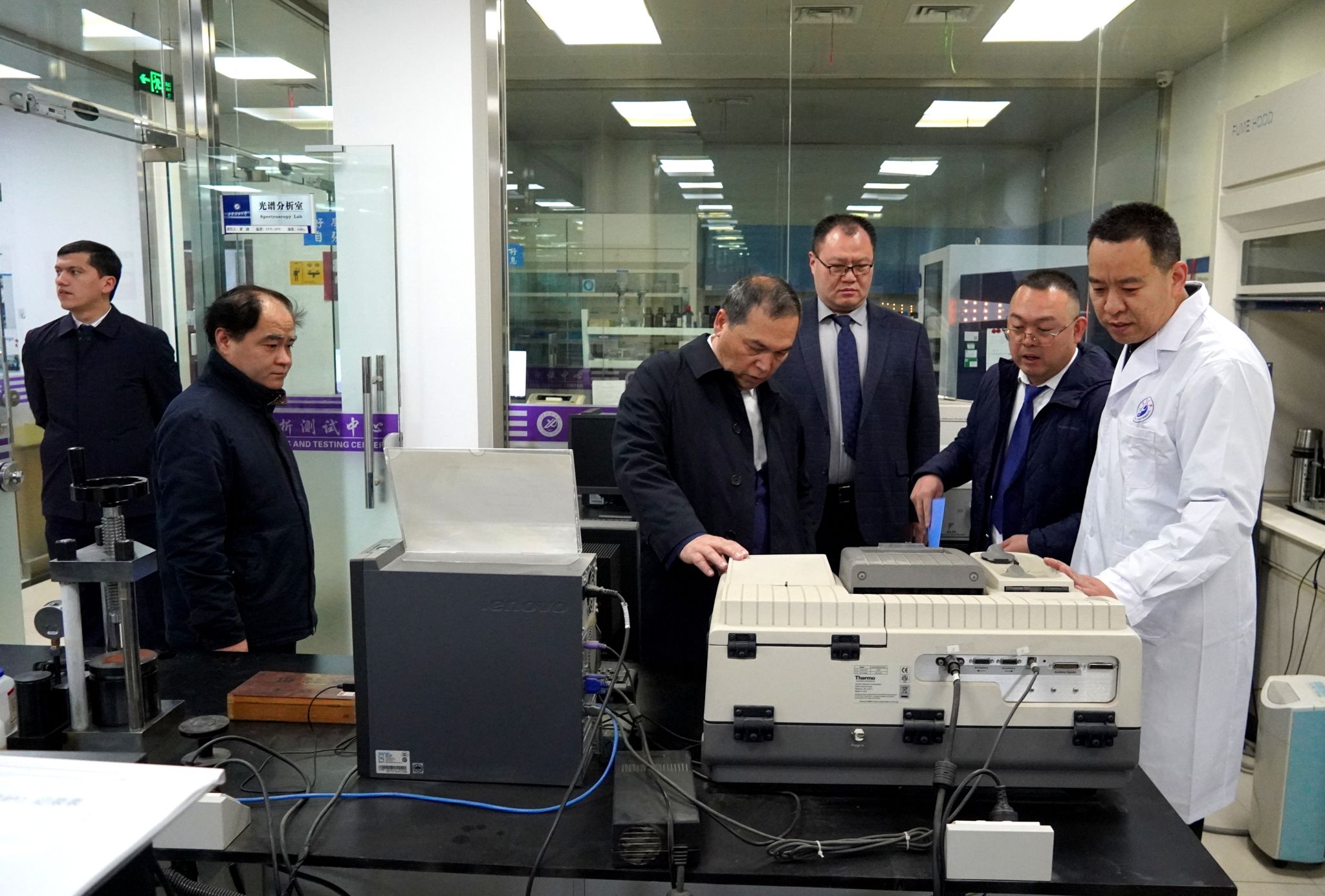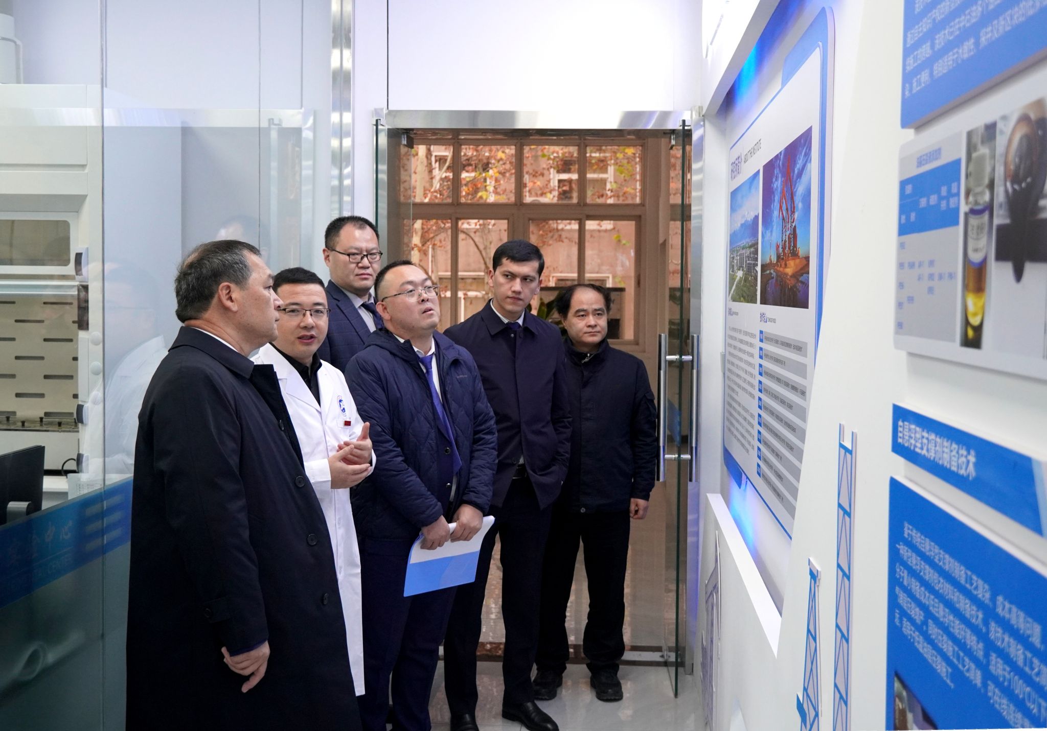 儀式結束后,烏方嘉賓參觀了化學化工學院現(xiàn)代分析檢測中心、開普(Cape)油氣增產技術研究所,就未來合作與化學化工學院教授、實驗室?guī)熒磉M行了深入交流。