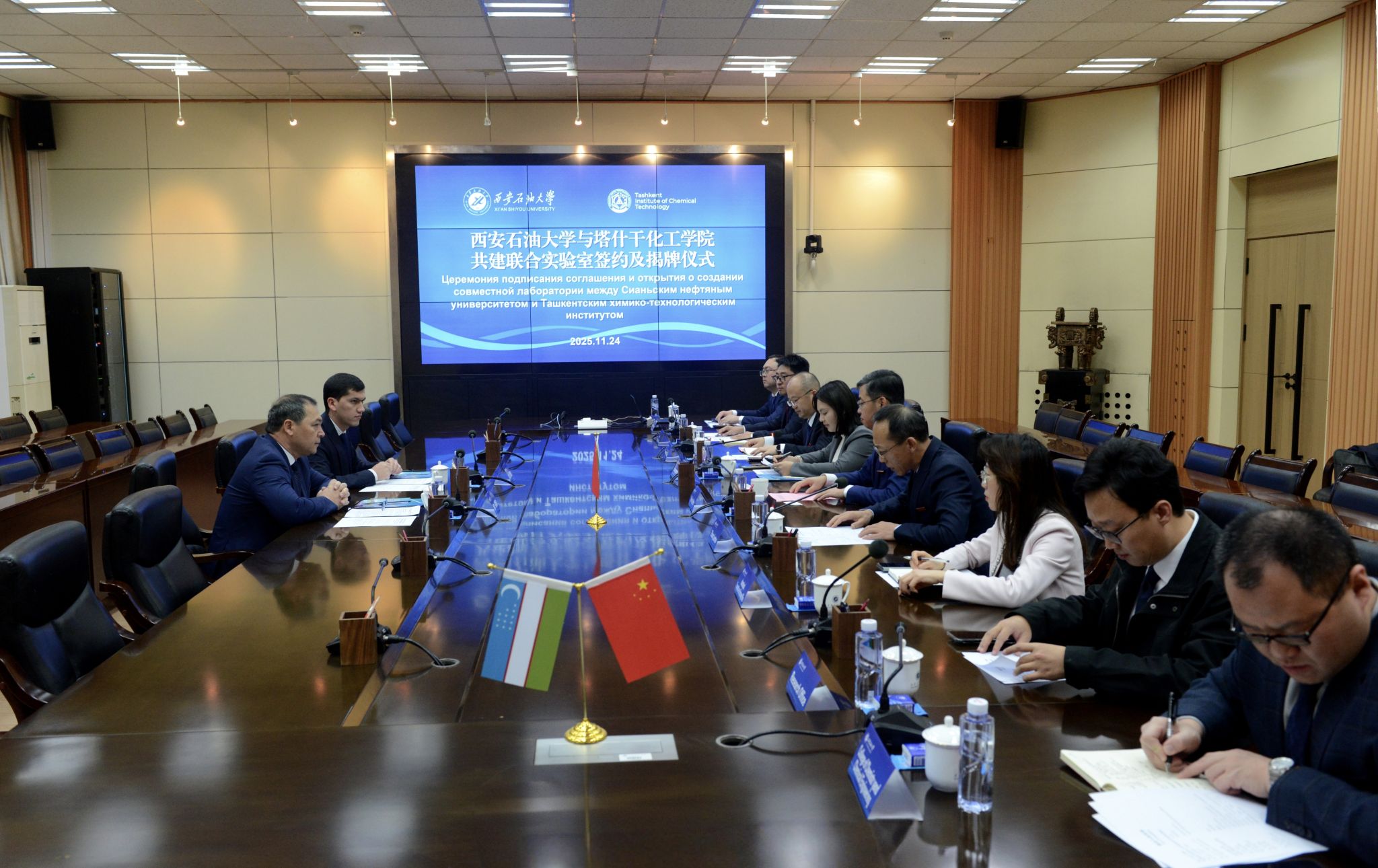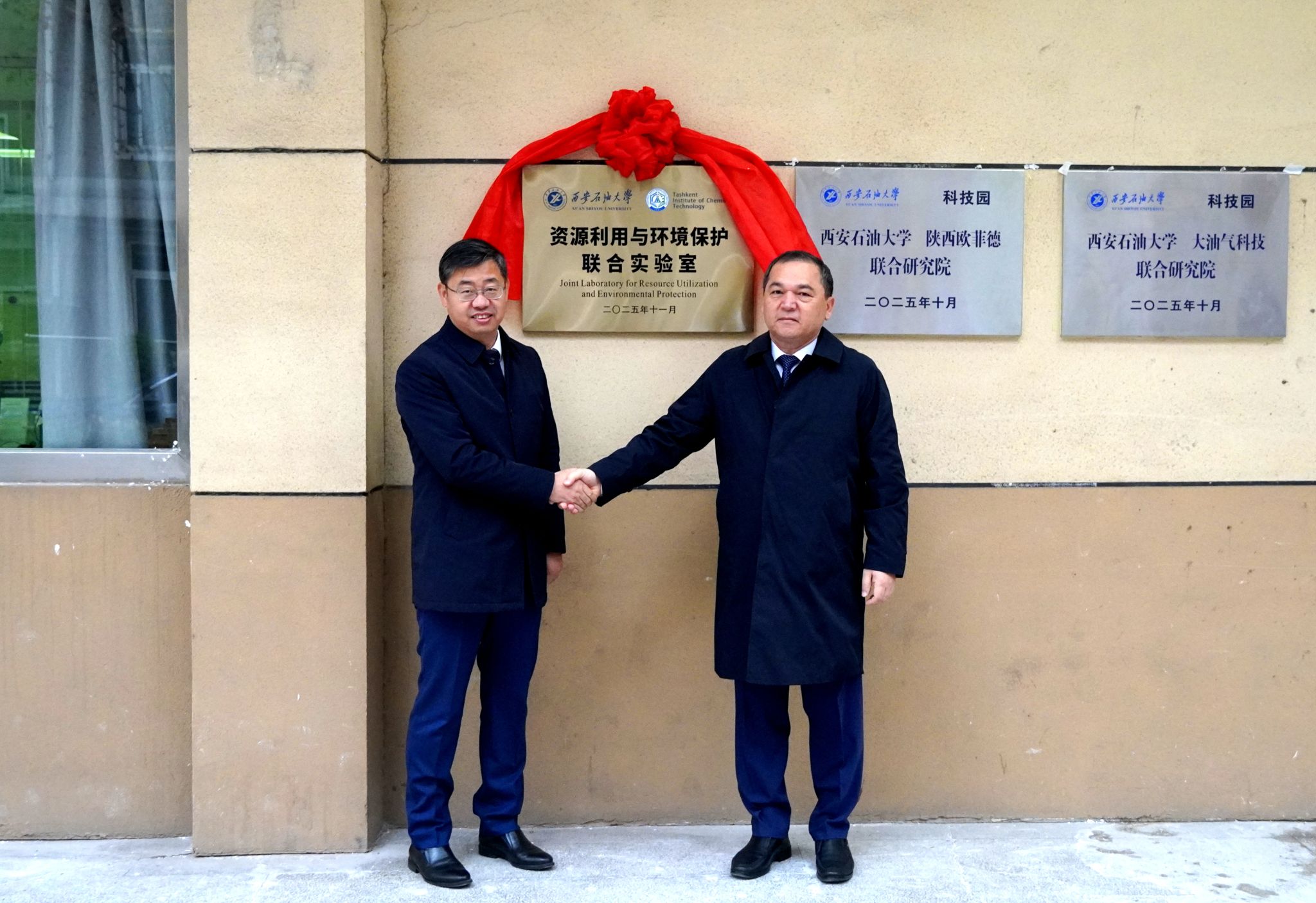 會上,兩校校長共同簽署《西安石油大學與塔什干化工學院共建資源利用與環(huán)境保護聯(lián)合實驗室協(xié)議》,并現(xiàn)場為“資源利用與環(huán)境保護聯(lián)合實驗室”揭牌。