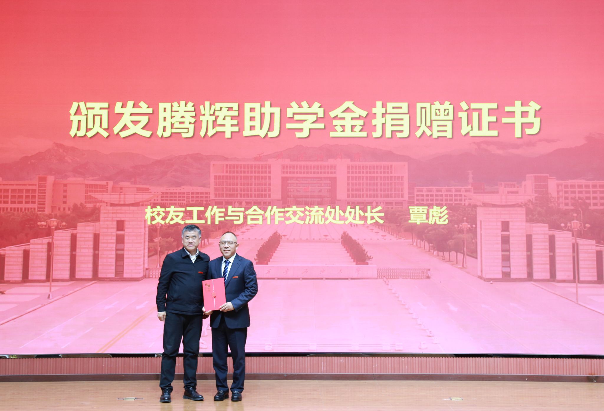 11月26日下午,騰輝助學金設(shè)立二十周年慶典暨2025年騰輝助學金發(fā)放儀式在鄠邑校區(qū)弘石學術(shù)報告廳舉行。校黨委副書記張木,騰輝助學金主要出資人、西安騰輝電氣有限公司總經(jīng)理、我校校友何榮,學生工作處、校友工作與合作交流處、團委、機械工程學院負責人,西安騰輝電氣有限公司員工代表,往屆受助優(yōu)秀校友代表康琦、張凱鋒、寧世潔,2025年受助學生及各院系師生代表共400余人齊聚一堂,共憶育人初心,共話成長擔當,慶典由副校長種宇宏主持。